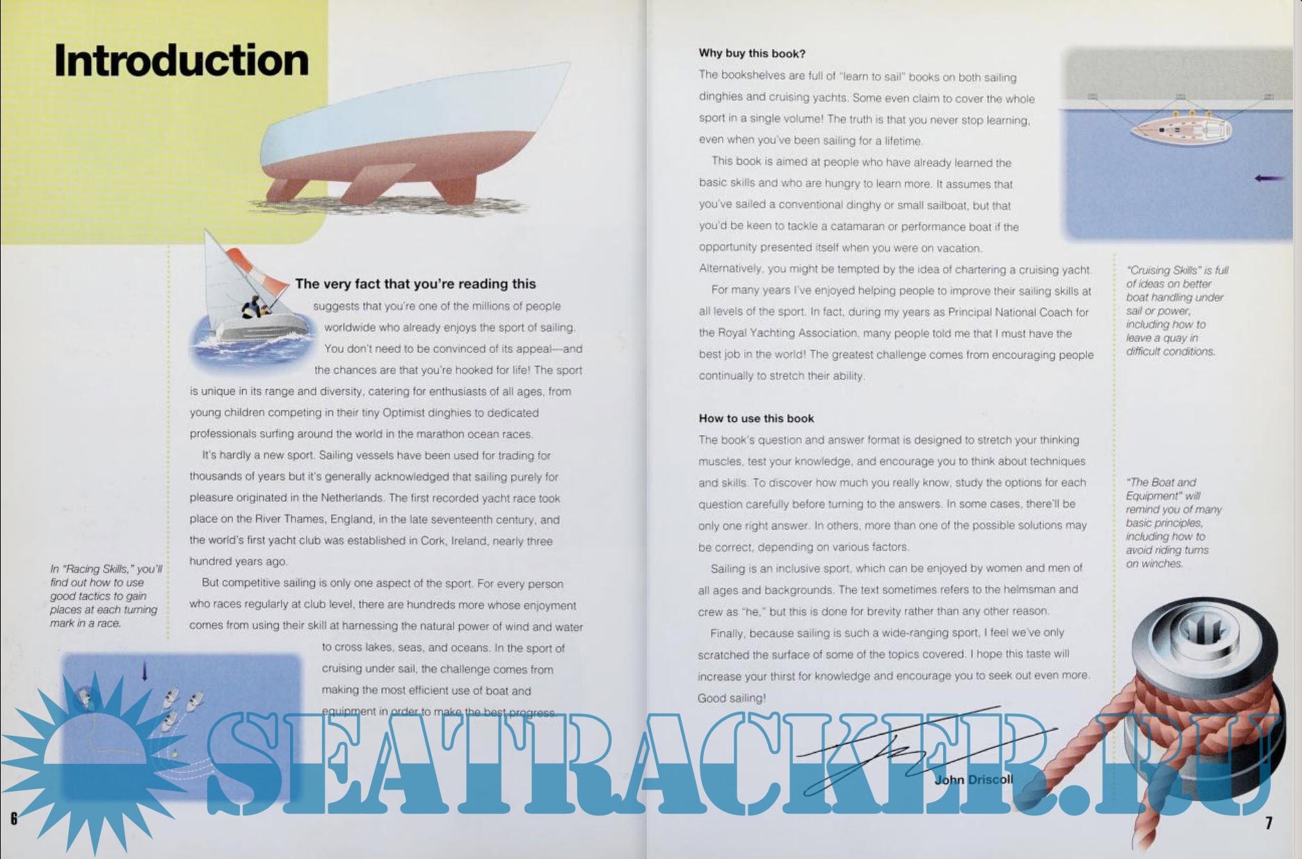 Year: 2003 Language: English Author: John Driscoll Genre: Handbook Publisher: Barron''s Educational Series Edition: First ISBN: 978-0764122569 Format: PDF Quality: Scanned pages Pages count: 128 Description: Few sailors can claim they have nothing more to learn about sailing, and this innovative book will help them all sharpen their skills. Improve Your Sailing IQ offers advice to sailors at every skill level, giving them the chance to dream their way through countless hours on the water. It will also help them discover just how knowledgeable they actually are about the sport. Here is valuable and simple-to-digest instruction on all aspects of sailing from one of the sport’s top instructional writers. He introduces each situation in an easy question-and-answer format, posing a problem, allowing readers to work through it, then providing an expert answer. Readers improve their sailing skill simply by thinking about the details of sailing and working out hypothetical problems. Instruction has never been this easy—or this much fun! Additional info: About the Author John Driscoll lives in England’s Lake District. He started teaching sailing during university vacations and developed his coaching skills with the Royal Yachting Association before becoming its Principal National Coach. John’s own sailing has ranged from sailboards and single-handed dinghies to offshore cruising and ocean racing. He has sailed in many parts of the world, including the Caribbean, Hong Kong’s waters, and the South Pacific.