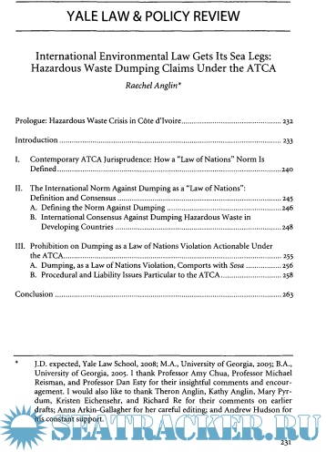 International Environmental Law Gets Its Sea Legs : Hazardous Waste Dumping Claims Under the ATCA