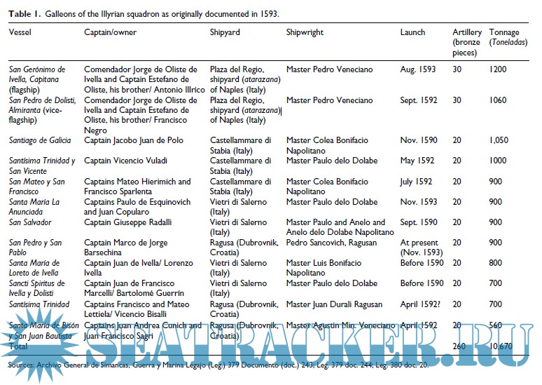 Description: Characteristics, dimensions and tonnages of Mediterranean-built galleons for Philip’s II Atlantic fleets (1593–1597)