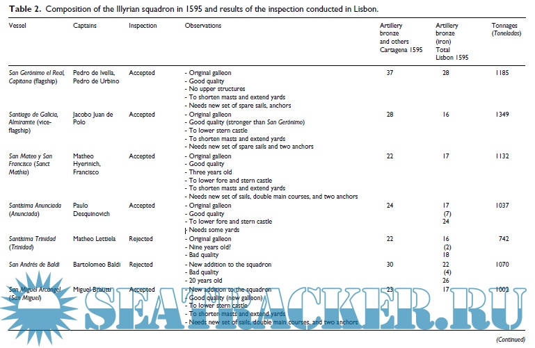 Santiago de Galicia and the Illyrian squadron: Characteristics, dimensions and tonnages of Mediterranean-built galleons for Philip’s II Atlantic fleets (1593–1597)