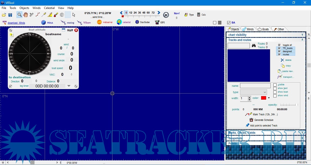 Description: Charting application with tools and numerical calculations for sailors. With NOAA GFS wind forecasts (from our own server), track planning, weather routing, GSHHS charts, GPS interface, Polar chart creation and edition, NMEA talker. Integration with Navigator and VRTool desktop.
