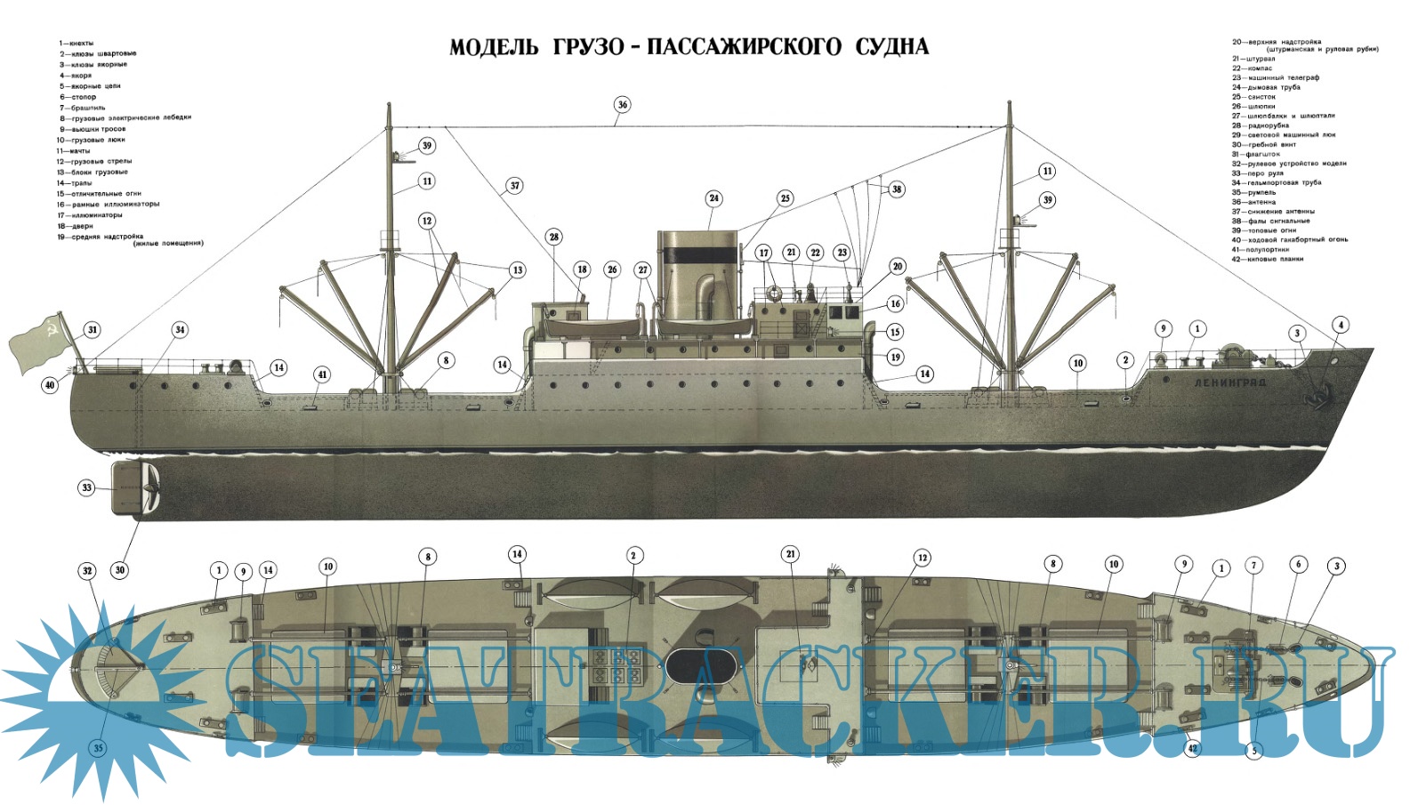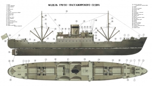 Модель грузопассажирского судна.