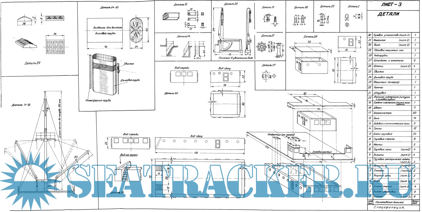 Описание: Описание изготовления и чертежи модели грузопассажирского судна