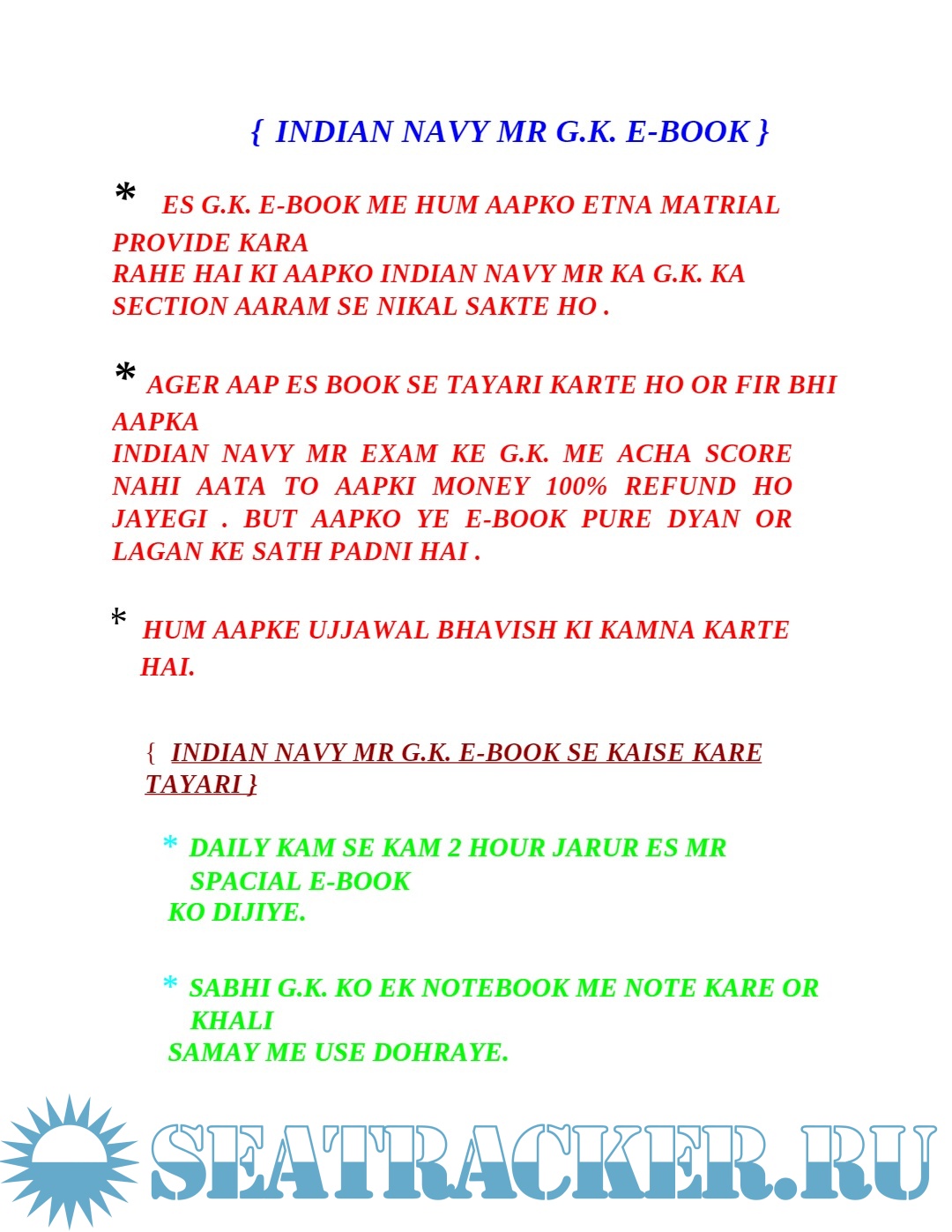 Description: Indian Navy MR Special EBook: 100% G.K. Section Cover.