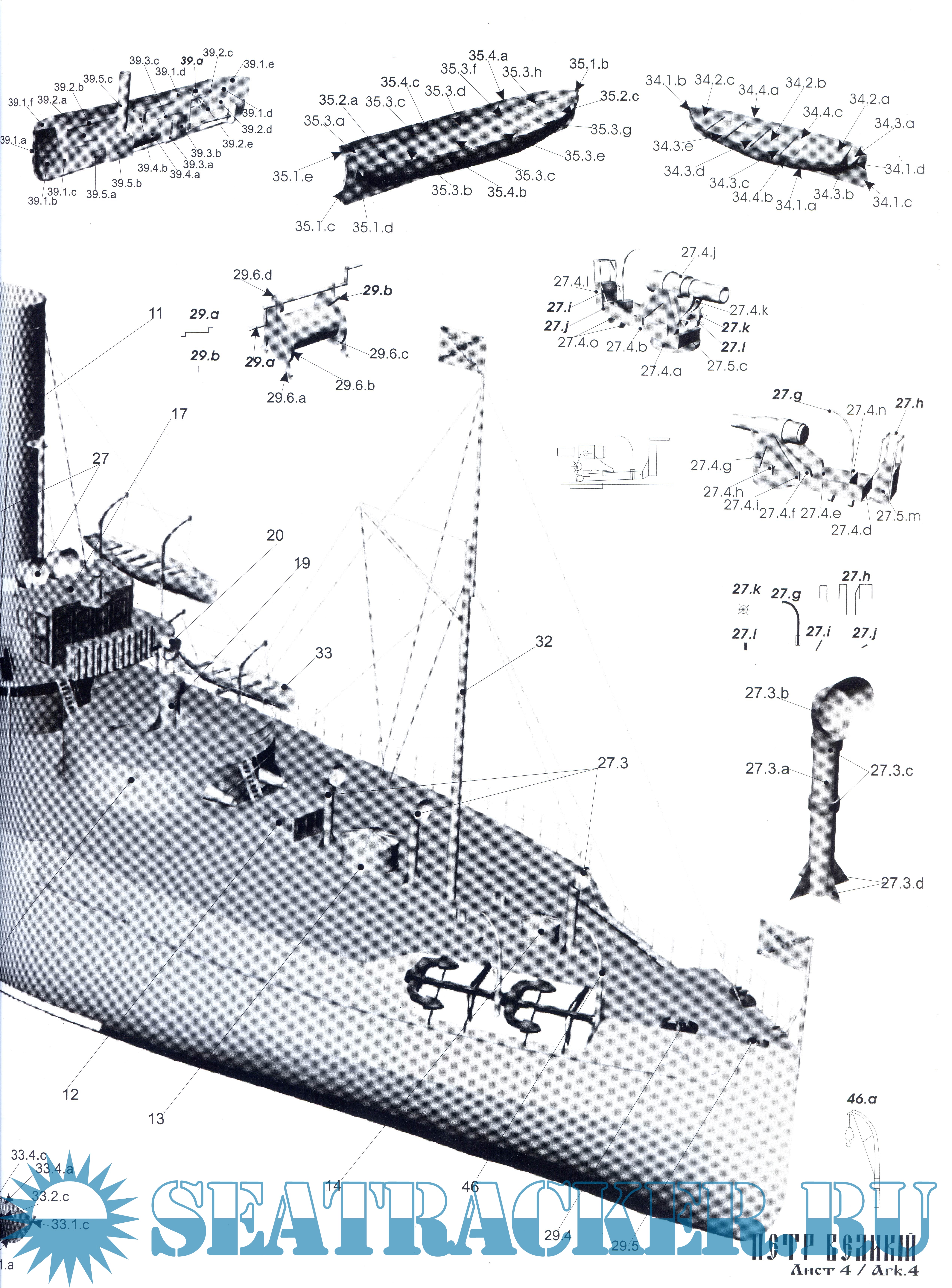 46 листов цветных выкроек и инструкций для изготовления бумажной модели броненосца "Петр Великий" Россия 1881 год в масштабе 1:200Скриншоты