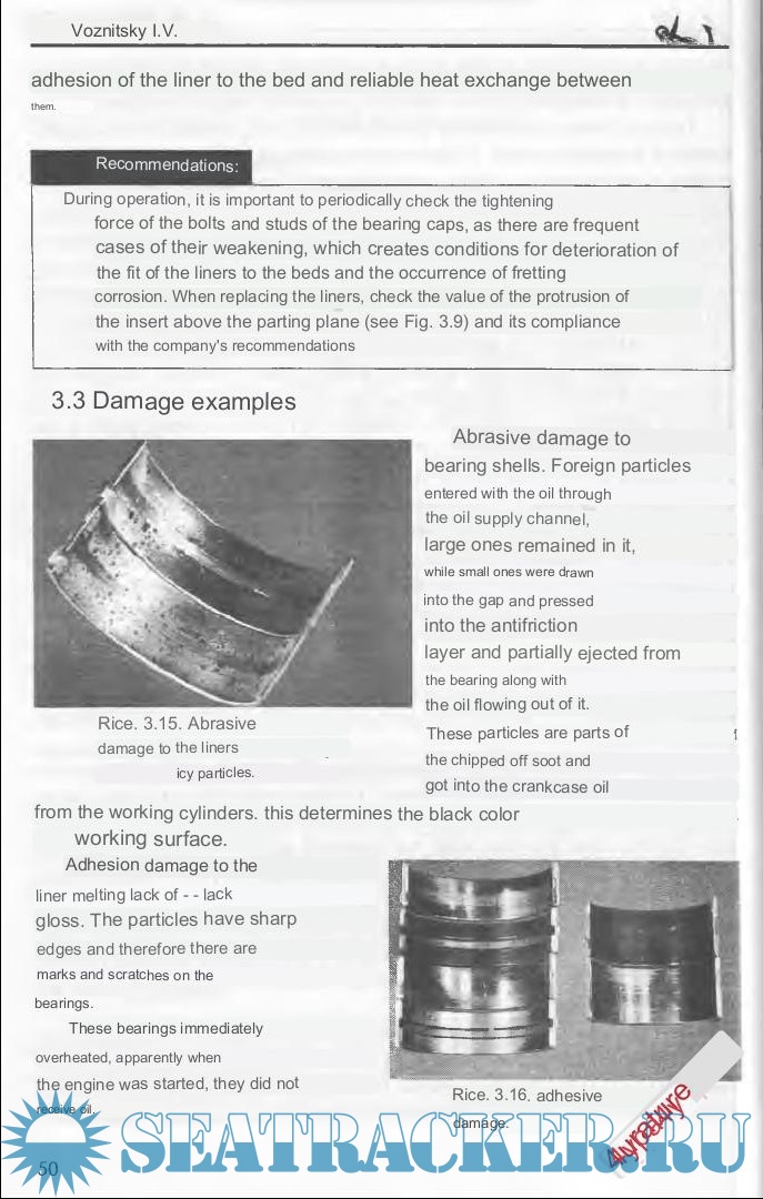 Description: The book provides examples and analysis of the causes of damage and breakdown of diesel engines .
