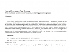 Год выпуска: 2023 Язык: Русский, Английский Автор: Том Оксфорд, Никита Валерьевич Ярославцев Жанр: Учебное пособие Формат: PDF Качество: Изначально компьютерное (eBook) Количество страниц: 77 Описание: Я Том Оксфорд, сертифицированный по международной системе TESOL преподаватель и официальный тренер IELTS, профессионально преподаю английский с 2009 года. В процессе работы, я заметил, что 9 из 10 русскоговорящих учеников не умеют пользоваться двенадцатью временами английского языка. Даже прочитав правила, они не понимают, как это делать. Проблема в том, что стандартные объяснения, изложенные в учебниках, часто не адаптированы под родной язык ученика. В результате увидев предложение: I’m tired because I’ve been working hard this week (Я устал, т. к. работал усердно на этой неделе), студенты просто “бросают язык”, не понимая, почему здесь используется Present Perfect Continuous, а не Past Simple или Past Continuous. В этой книге я объясняю все 12 времён, учитывая особенности русского языка. Прочитав эту книгу, вы сможете понять, как они используются, и начнете говорить правильно. А самое главное – лучше понимать носителей.