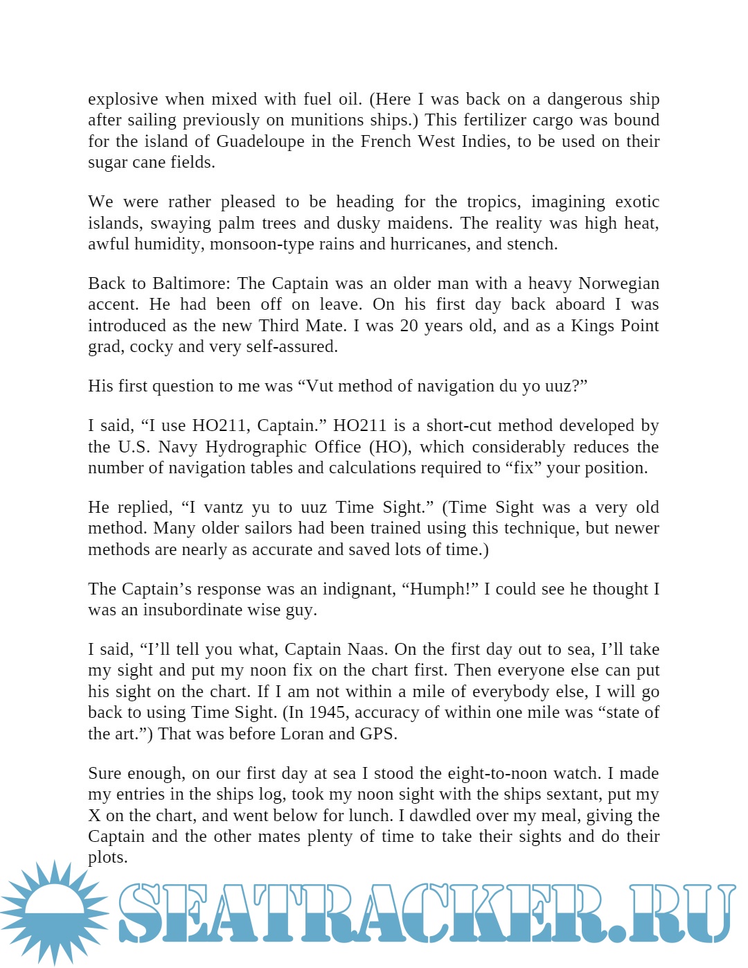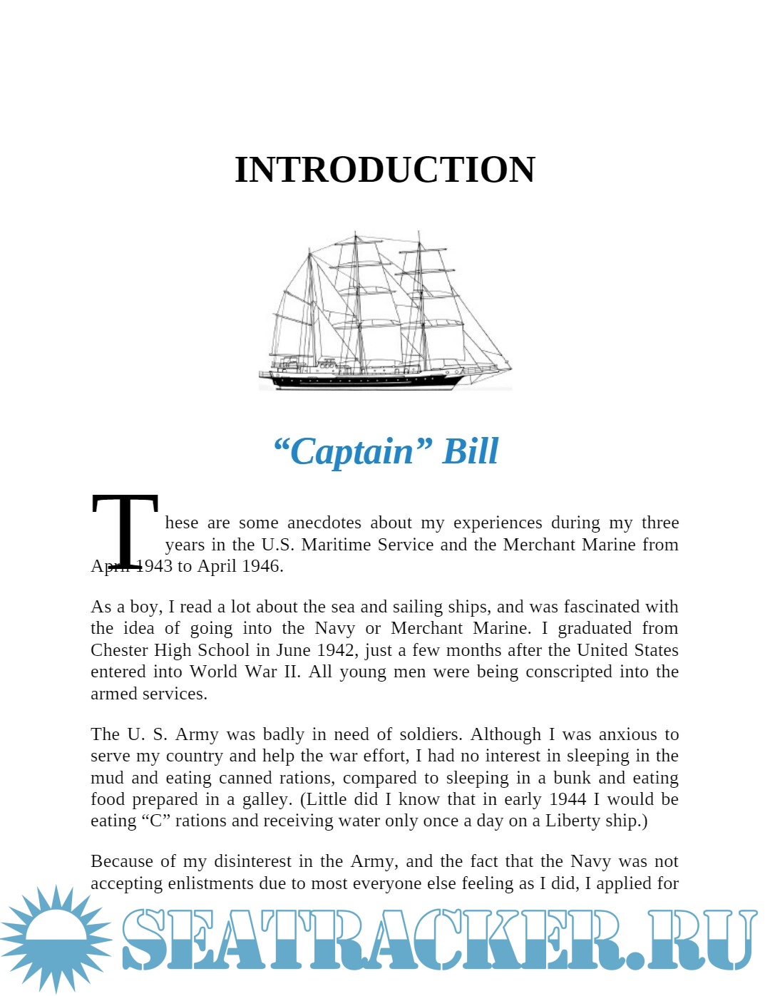 Year: 2015 Language: english Author: William R. Snell Edition: Kindle Format: PDF Quality: eBook Pages count: 122 Description: The author, Bill Snell, graduated from the United States Merchant Marine Academy in 1944. He sailed as Second Mate and Third Mate in the Atlantic and the Mediterranean during the Second World War, and in the Caribbean after the war. “Captain” Bill is the story of his adventures at sea, serving as an officer on Liberty Ships, which were the backbone of the transport of the armaments and supplies needed to fight the greatest war in history