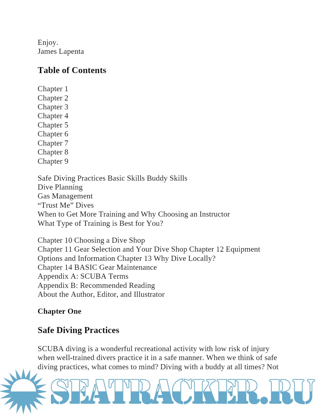 Year: 2014 Language: english Author: James Lapenta Genre: Guide Edition: Kindle | 2nd Format: PDF Quality: eBook Pages count: 161 Description: SCUBA is a fun, relaxing, educational, interesting, and -- if approached properly -- safe activity, it is nonetheless a sport that has risks. SCUBA diving is in fact an extreme sport that can injure or even kill very quickly, and in some very nasty ways. What we are doing is entering an alien environment that is normally hostile to human life. We cannot breathe in water without some kind of mechanical assistance. These are facts and the details should be covered in every Open Water (OW) class. All too often in today’s society, however, people do not want to take the time to properly prepare and get the education to safely take on new tasks. Some agencies appear to have responded to this by developing training programs that turn out high numbers of certified divers in shorter time frames, necessitating the reduction of time spent on what I consider to be some necessary basic skills. While this has resulted in great numbers of new divers entering the water, it has not resulted in many of those divers staying in the water. New divers are often given just enough training to enable them to dive in the most benign conditions under close supervision. Even then, there are still those who find out their initial training was just not adequate. It is at this point that they either make the decision to get more training or they leave the sport. The latter happens all too often. The former, when it does happen, does not always occur for the right reasons. Students should return to training to expand their diving and learn new skills; they should not have to return for new training just to be able to enjoy the sport safely. To require students to come back for basic information is something I find very troubling, and in some cases, has actually cost divers their lives. A lack of rescue instruction has resulted in a number of diver deaths when buddies did not know how to drop weights, support a diver at the surface, or even stay in contact with their buddy. This is another area frequently talked about, but all too often not actually put into practice. The concept of always diving with a buddy and just what that means in the “real world” is often given too little attention. Unfortunately, it is impossible to foresee every conceivable situation that can arise, but there are many basic issues that can be covered. The following chapters will hopefully address much of what is being overlooked or delayed in many programs as they exist today. It is my hope that this information also finds its way into the hands of those who have not yet begun the training process. I have included a chapter on how to select an instructor based on the quality of instruction and the content of the course. In some cases, these classes may cost more than the less comprehensive courses also available, but usually they do not. In fact, when you consider the additional skills and education gained from a more comprehensive course, you will find that you have received much more value for each dollar spent. In addition, you gain priceless benefits in the form of greater confidence, enjoyment, skills, and -- most importantly -- safety. Enjoy and dive safe Additional info: https://seatracker.club/viewtop...hp?p=94440#94440 About the Author: James Lapenta was first certified as an Open Water Diver in 2004. He has numerous specialties from several agencies and earned his Instructor certification with the YMCA Scuba program in 2008. This subsequently became Scuba Educators International and he made the transition to it in October of 2008 and formed UDM Aquatic Services to offer instruction, and since 2011, equipment. He received his CMAS 2 Star Instructor Rating in August of 2010. Jim has logged dives in conditions ranging from warm, clear water in the Florida Keys, Bonaire and Puerto Rico, and Technical Dives to the cold depths of Lake Erie and the St. Lawrence River. A fan and proponent of local diving, he has explored numerous lakes and quarries in West Virginia, Ohio, and Pennsylvania. As of 2013, he has certified or assisted in the certification of over 170 students from Junior Open Water to Dive Master. He specializes in working with younger people and others needing extra attention for any reason. Jim has authored a course in Underwater Navigation for SEI Diving, and has developed a new Advanced Open Water course that has drawn students from hundreds of miles away. He is also a co-author and editor of a course in Search and Recovery and entry level Public Safety Diving. In 2011 his book SCUBA: A Practical Guide for the New Diver was officially released. It now has readers in 20 countries on six continents. Making him an internationally known author in the Scuba Diving community. Most recently in 2012 he added to his instructor ratings by doing a crossover to SDI/TDI (Scuba Diving International/Technical Diving International) to offer classes and specialties in Deep, Wreck, Night/Limited Visibility, Computer Nitrox, and TDI Nitrox and TDI Intro to Tech classes. He is also a fully authorized HOG Equipment Service Clinic Instructor.
