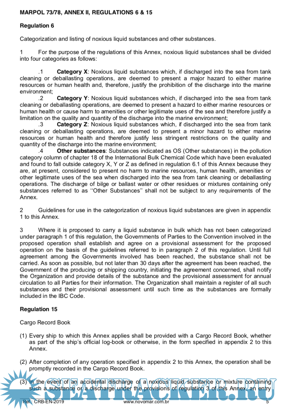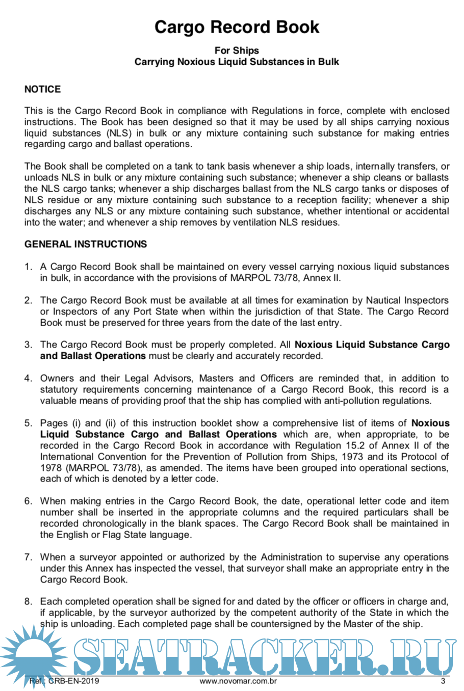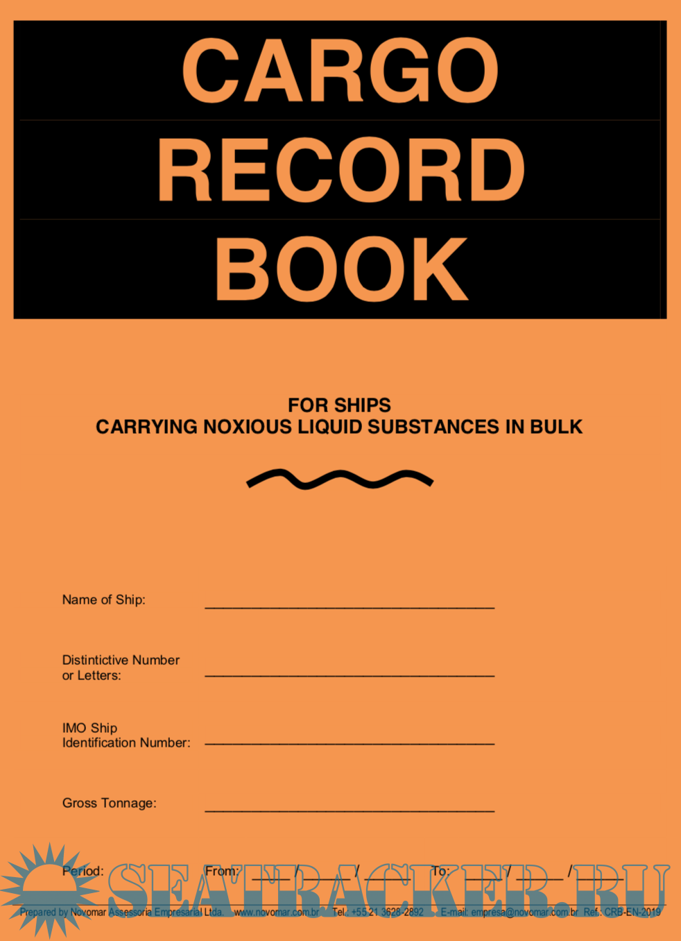 Description: This is the Cargo Record Book in compliance with Regulations in force, complete with enclosed instructions. The Book has been designed so that it may be used by all ships carrying noxious liquid substances (NLS) in bulk or any mixture containing such substance for making entries regarding cargo and ballast operations.