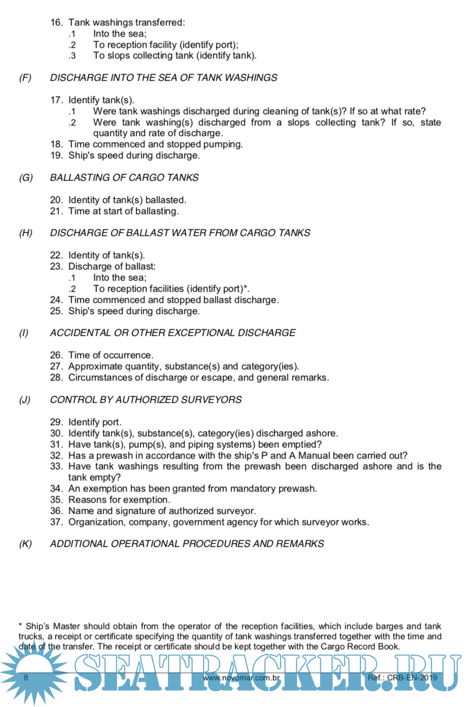 Ballast Water Management Record Book requirements - DBS [2022, PDF]