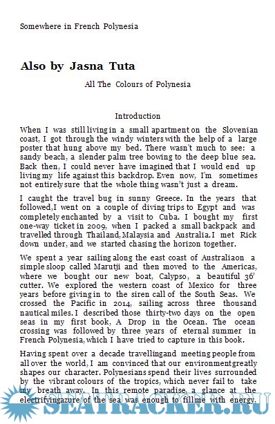 Year: 2020 Language: english Author: Jasna Tuta Edition: Kindle | 2nd Format: azw3 Quality: eBook Pages count: 104 Description: Tales of great heroism and daring at sea are all well and good. But this isn't one of them. Totally free of hyperbole and exaggeration, A Drop in the Ocean is an honest and genuine account of what it is really like to cross a very big ocean, on a very small sailboat, for the very first time…When you raise the sails and head into the unknown, you take on the most fascinating challenge of your life. But you also embark upon a voyage of an entirely different nature. As the initial fear of the unknown slowly gives way to the daily rhythm of life at sea, something entirely unexpected happens. This book is one woman's attempt to describe the nature and effect of this subtle transformation. A Drop in the Ocean is a book for anyone curious to read an honest account of how challenging, inspiring, and ultimately rewarding it can be to venture across the open water with only your vessel, experience, and wits to guide you. Along with describing the realities of exhaustion, seasickness, and bruises, Jasna also interweaves moments of magic and this why her book is so important. A Drop in the Ocean doesn't romanticize an ocean crossing but shows both its difficulty and also its enchantment. These are the pleasures of ocean sailing that can only be experienced firsthand or read about in books like Jasna's. The beauty of the ocean is not just found when the wind and waves are perfect and in the right direction, but in what the sea forces you to do when they are not. Jasna's personal realizations and her final sense of achievement are a straightforward, honest, and accurate portrayal of a first time ocean voyage. There are still places in the world that many people will never visit, like the famed islands of the South Pacific and luckily there are also still people in the world adventurous enough to travel across an ocean by sailboat to experience them firsthand and share those stories with us. Additional info: Use 'Calibre' to open .azw3 files. https://seatracker.club/viewtopic.php?t=54985