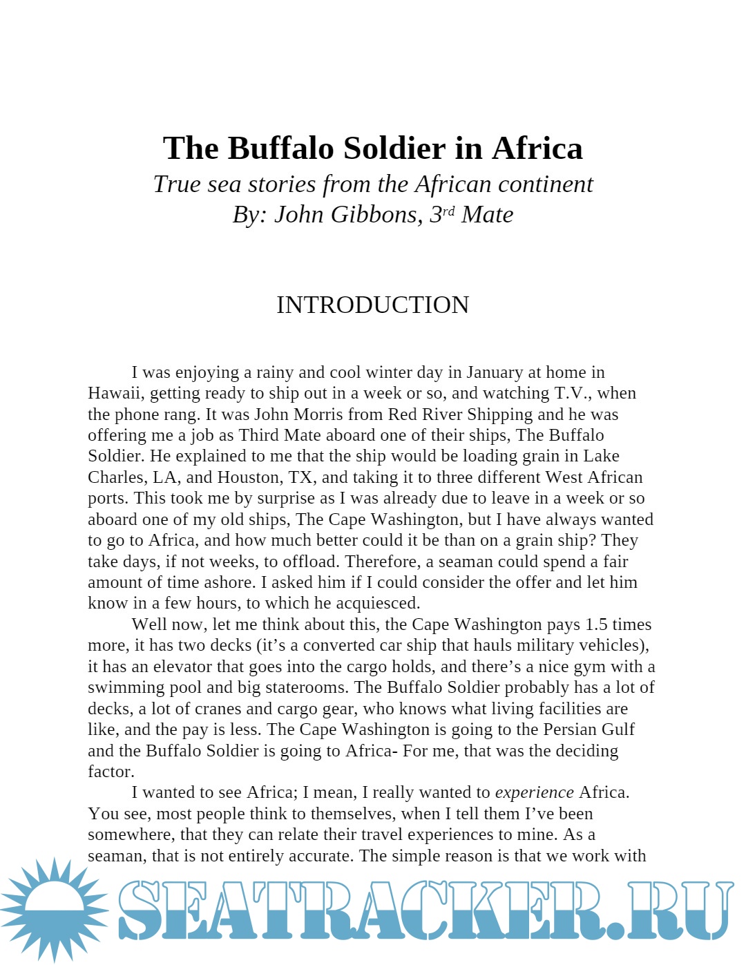 Year: 2019 Language: english Author: Captain John Gibbons Format: PDF Quality: eBook Pages count: 142 Description: This book contains two short Sea Stories. These stories will take you right into what life aboard a merchant ship for months at a time is like Part one is about my time as a young Third Mate aboard the M/V Buffalo Soldier, a cargo ship laden with food from the USA bound for West Africa. Part two is chronicles of time spent aboard my first five ships as a Able Seaman. Voyages include destinations such as the Panama Canal, Suez Canal, Spain, Persian Gulf, Malta, Hawaii and coastal USA. In both true life sea going adventure books I take you aboard to meet the crew of the ships and introduce you to our daily ship board routines. Loading and unloading cargo, navigation, mooring and of course storms at sea as well tranquil days at sea that are magically beautiful.