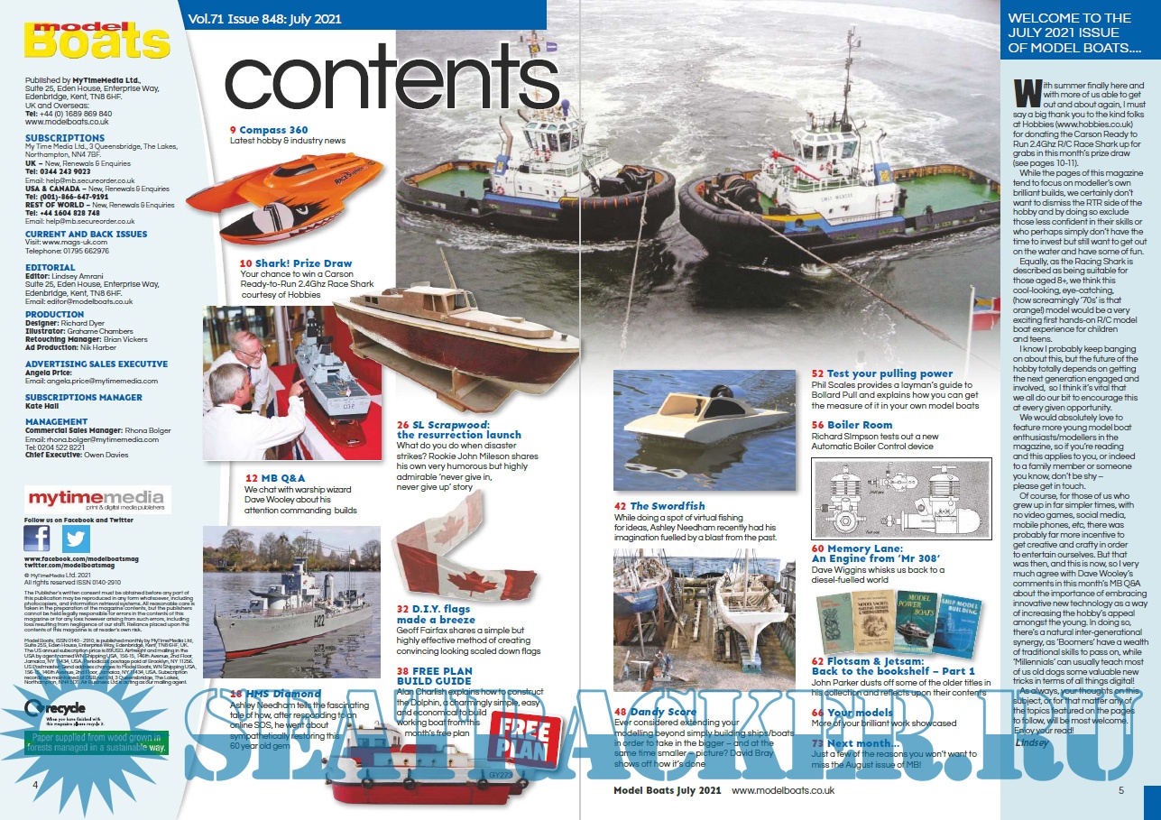 Year: 2021 Language: english Author: Lindsey Amrani (Editor) Genre: Periodical (magazine) Edition: 2021-07 Format: PDF Quality: eBook Pages count: 76 Description: Model Boats magazine is a practical and informative read for those with a love for the hobby. It covers the latest news and views from the various clubs and associations around the country, useful hints, tips and step by step guides for those interested in the art of constructing a model boat as well as tests and recommendations of new boats and tools. Floating along behind these are great special features examining in depth different models from narrowboat to destroyer!