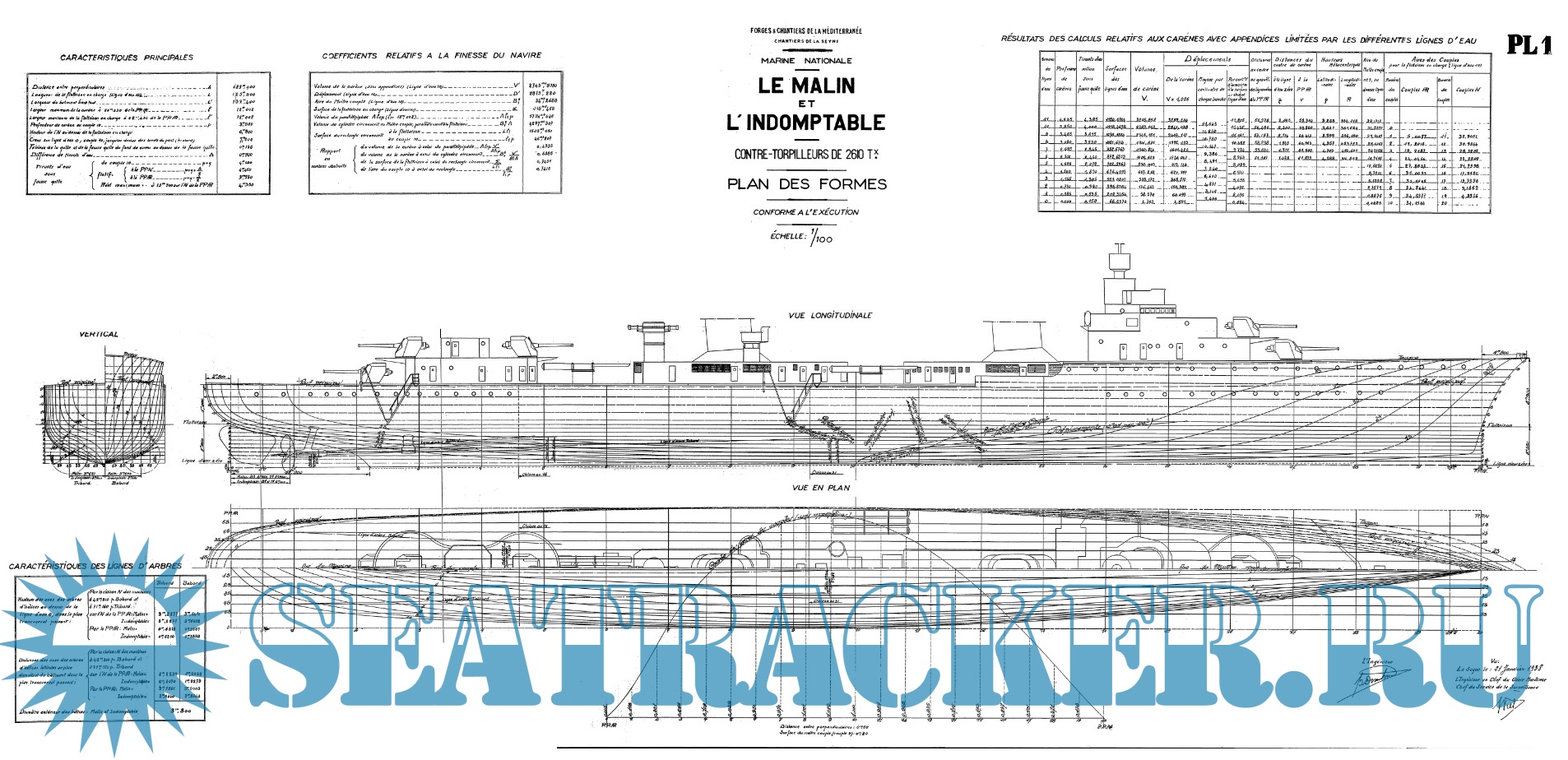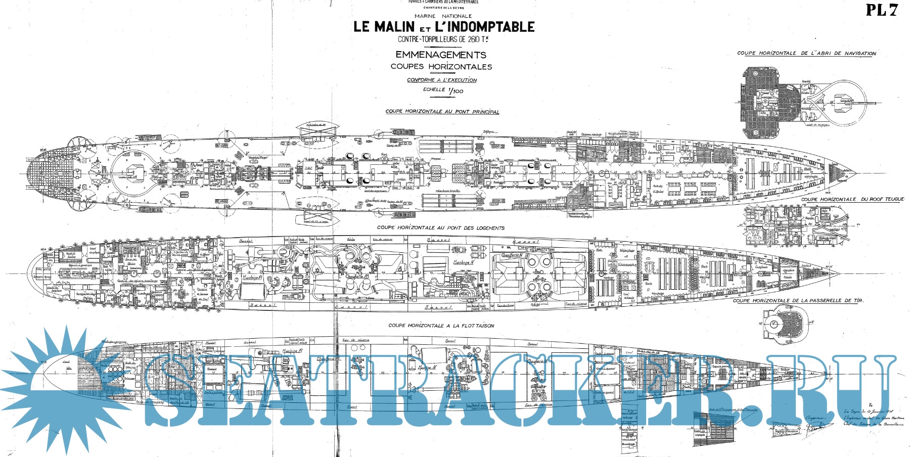 Архивные чертежи эскадренного миноносца LE MALIN (Франция) 1933 год