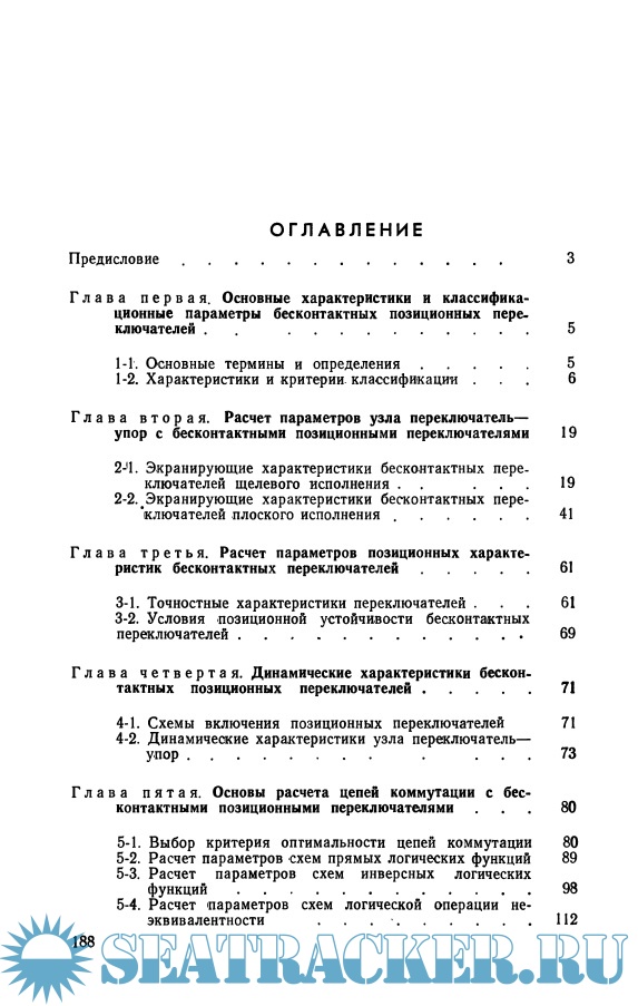 Описание: В книге рассмотрены основные характеристики и классификационные параметры бесконтактных позиционных переключателей. Анализируются закономерности, описывающие связь между параметрами точностных, статических и динамических характеристик узла переключатель - упор, а также условия его позиционной устойчивости. Установлены количественные критерии оценки оптимальности различных схемных решений прямых и инверсных логических функций, реализованных на бесконтактных переключателях. Изложены теоретические основы и инженерная методика расчета коммутационных характеристик, построения областей устойчивой коммутации и методы коррекции их границ для бесконтактных цепей управления автоматизированным электроприводом.