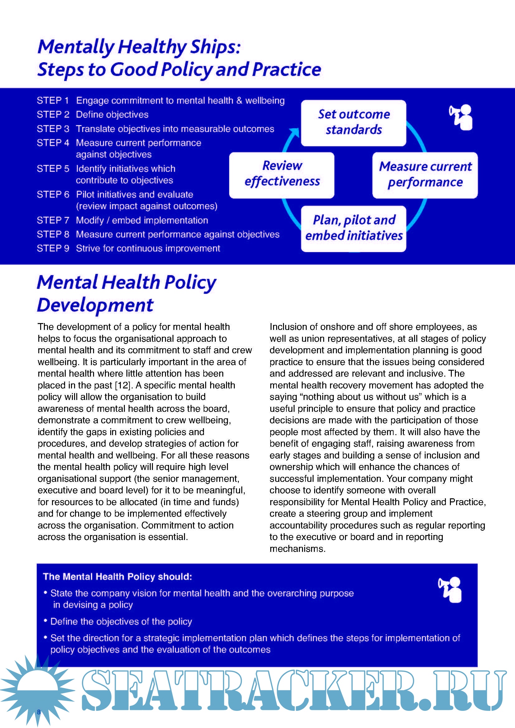 developing mental health policies for seafarers. There is still a great deal of work left to do to increase