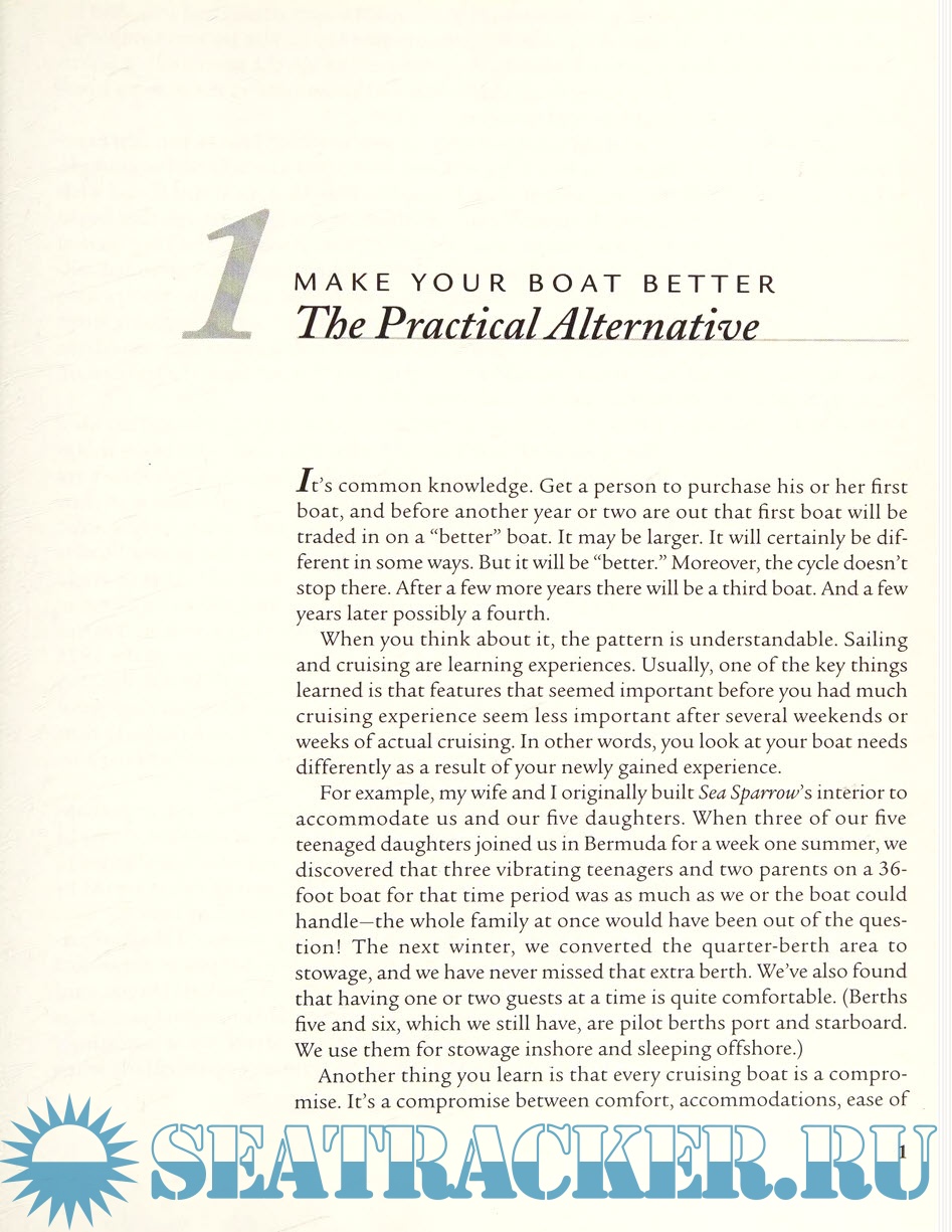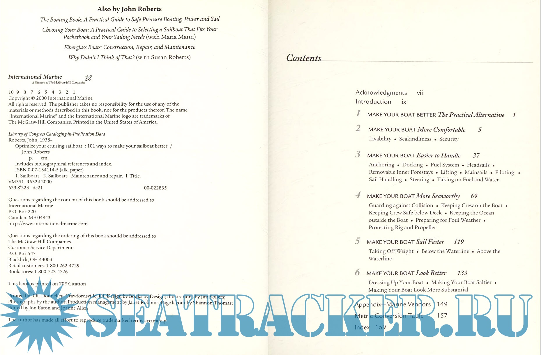 Year: 2000 Language: English Author: John Roberts Genre: Handbook Publisher: McGraw-Hill Edition: First Format: PDF Quality: Scanned pages Pages count: 144 Description: Developed for cruising sailboat owners with 24- to 45-foot fiberglass boats, John Roberts' projects: *improve comfort, handling, seaworthiness, performance, and dockside appeal *show how to add attractive features such as a deck washdownsystem, a backstay self-leving radar mount, and more