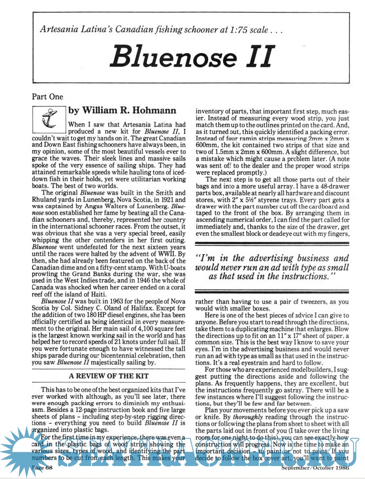 Year: 1986 Language: english Author: Scottie Dayton (Editor) Genre: Periodical (magazine) Edition: 1986-5 Format: PDF Quality: Scanned pages Pages count: 92 Description: Seaway is the home port for Seaways Ships in Scale magazine, the leading workshop and research magazine for the ship modeler. In the magazine we explore all levels of modeling experience, all types of ships, all kinds of models, all historical eras and all construction materials