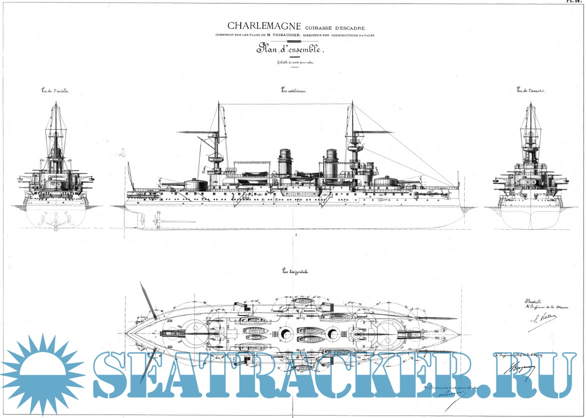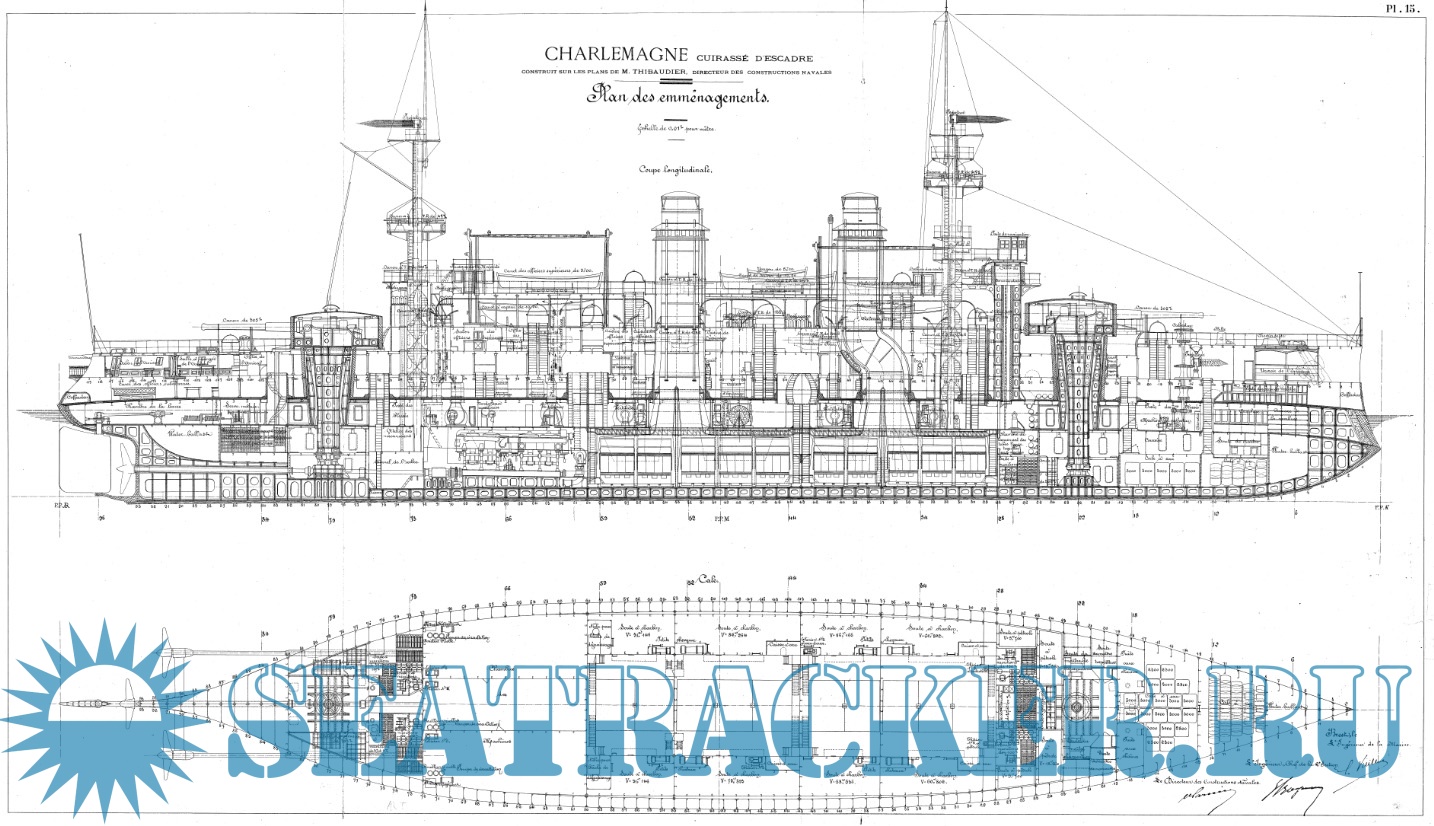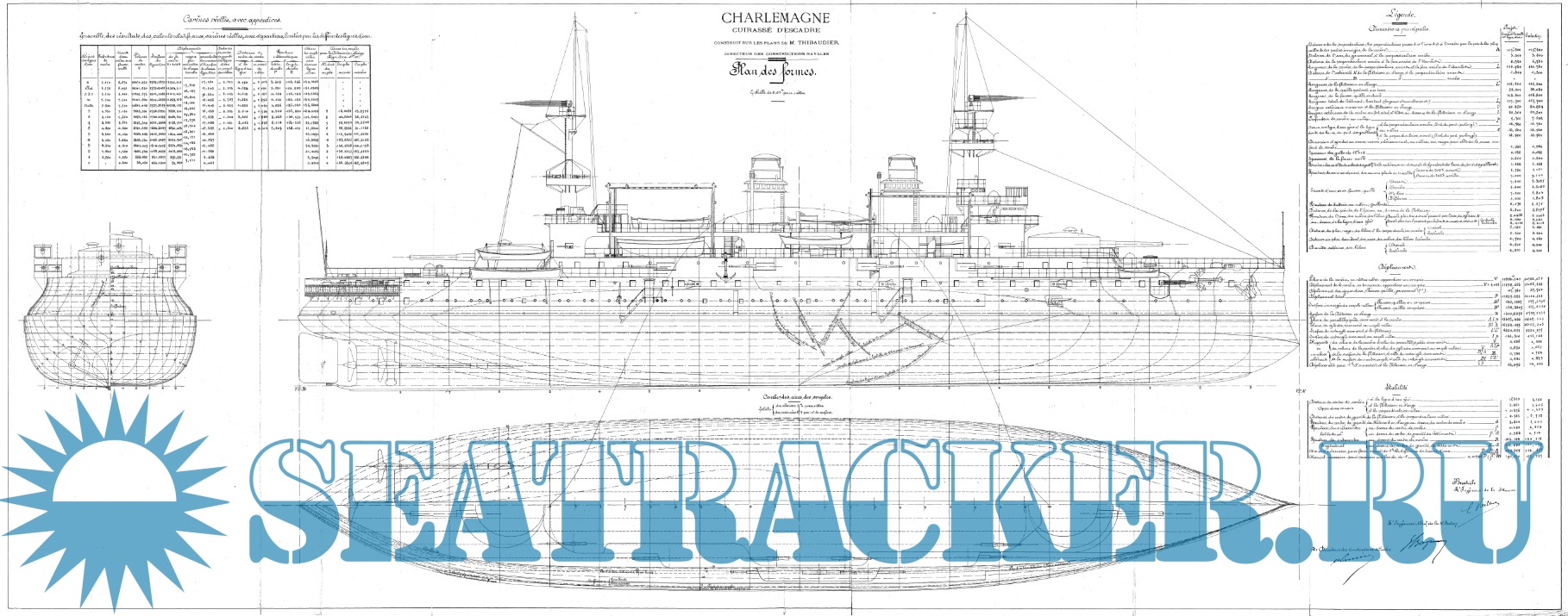 Архивные чертежи эскадренного броненосца CHARLEMAGNE (Франция) 1895 год