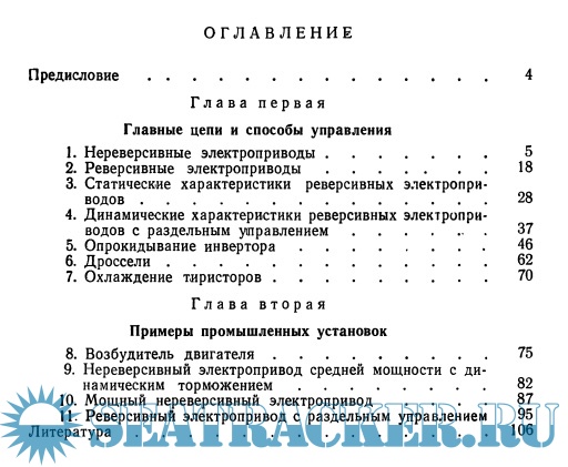 Описание: Описаны тиристорные преобразователи для электроприводов постоянного тока. Рассмотрены схемы выпрямления, защиты от перенапряжений и чрезмерных токов, охлаждение тиристоров. Изложены принципы управления тиристорами. Приведены примеры промышленных установок для возбуждения электрических машин и питания якорей двигателей постоянного тока