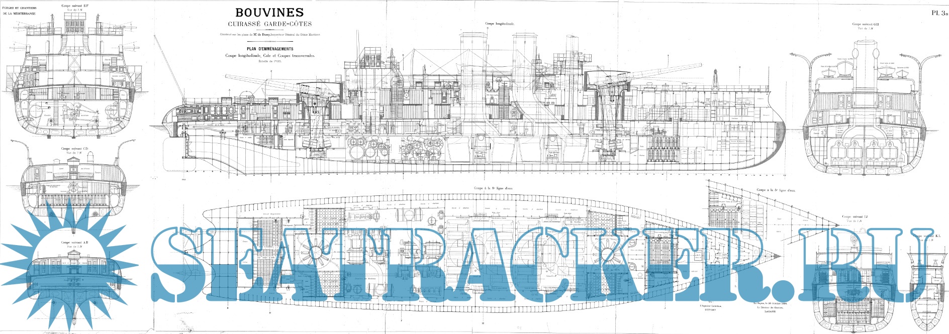 Архивные чертежи французского броненосца BOUVINES 1892
