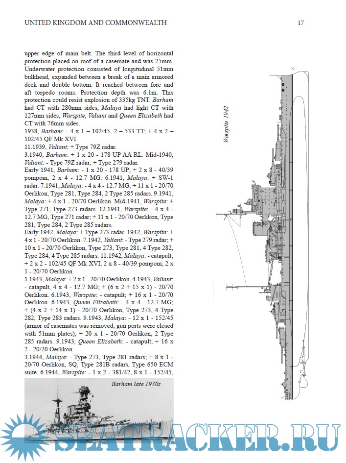 Description: This book, the first in the "Fighting ships of World War Two" series, contains reference information about all fighting ships and boats of Royal Navy and Navies of Commonwealth, served, built or ordered in days of the Second World War. Articles contain information about designing, building and service of all ships and their technical data and modernization. Texts are accompanied by many photos and side view drawings. The book also contains information about organization of Royal Navy, British ship-based airplanes and naval weapons.