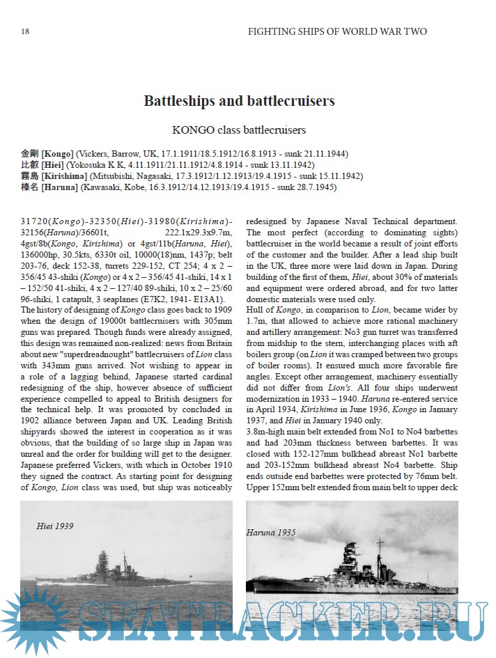 Description: This book, the third in the "Fighting ships of World War Two" series, contains reference information about all fighting ships and boats of Imperial Japanese Navy, served, built or ordered in days of the Second World War. Articles contain information about designing, building and service of all ships and their technical data and modernization. Texts are accompanied by many photos and side view drawings. The book also contains information about organization of IJN Navy, IJN ship-based airplanes and naval weapons.
