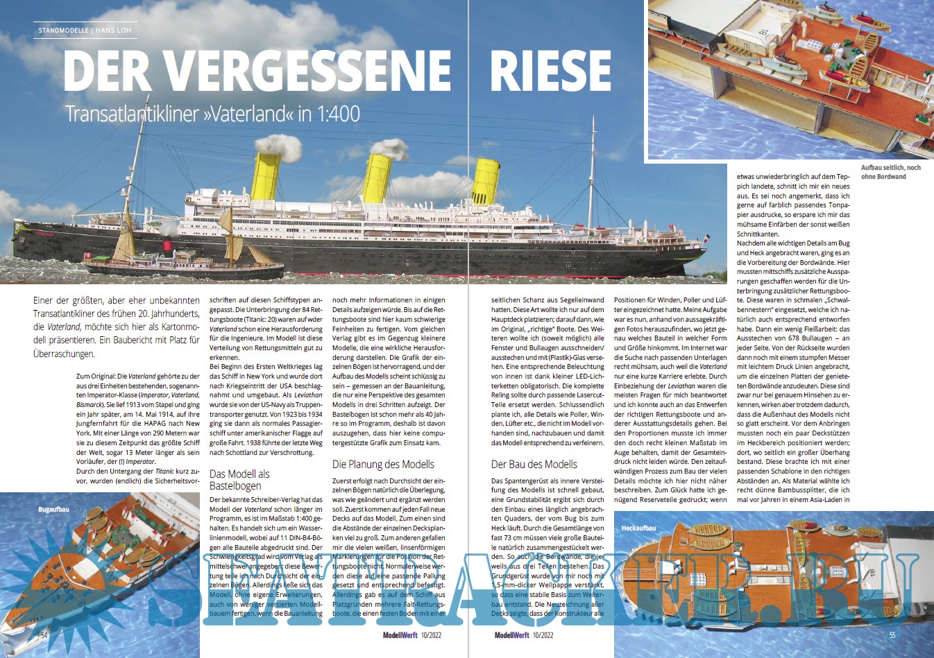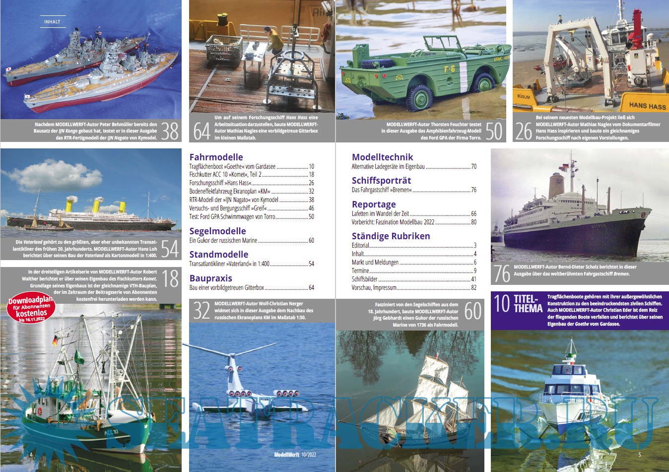 Year: 2022 Language: german Author: Eric Schafenrort (Redaktor) Genre: Periodical (magazine) Format: PDF Quality: eBook Pages count: 86 Description: Das führende Fachmagazin für Schiffsmodellbauer. Egal ob Stand- oder Fahrmodell, ob kleines Segelboot oder gigantisches Kreuzfahrtschiff. Die Modellwerft informiert über Neuheiten, hilft mit Bautipps und fasziniert mit besonderen Reportagen.