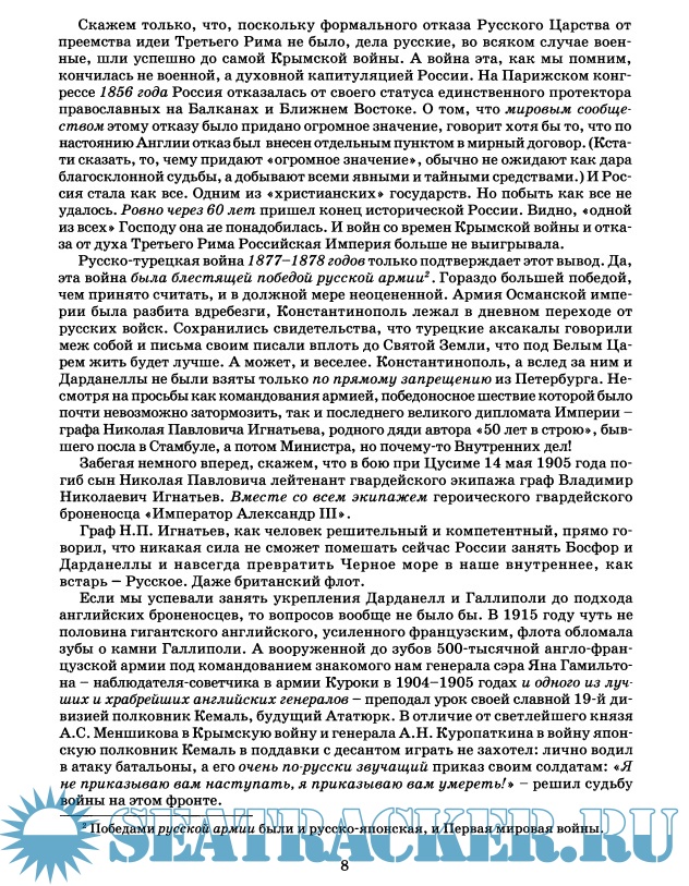 Описание: Цусимское сражение — ключевой фактор русской и мировой истории, ее точка ветвления. Для прояснения весьма специфических черт Цусимского боя подробно рассмотрены все значительные боевые действия русского флота в войну 1904-1905 годов.В работе восстановлено действительное развитие событий при Цусиме, в том числе графически воссоздана начальная фаза боя, что можно рассматривать как новое слово в историографии военно-морских сражений и серьезное научное открытие.Результатом проведенного расследования стал вывод, что Цусимский бой, во всяком случае его завязка — первый удар русской эскадры, является несомненной тактической победой русского флота. А Цусима в целом — победой русского воинского духа, не сломленного никакими материальными факторами.Первыми осознали и поняли это японские адмиралы, исказив и извратив в своих донесениях и схемах правду о начале боя. В свете скрываемой до сих пор от мира правды можно понять, почему морской министр победоносной Японии — уже после Цусимы! — отчаянно подталкивал свое правительство «к уступкам во имя заключения мира».В заключение трилогии показано истинное значение русско-японской войны в нашей истории как последней победы Святой Руси.
