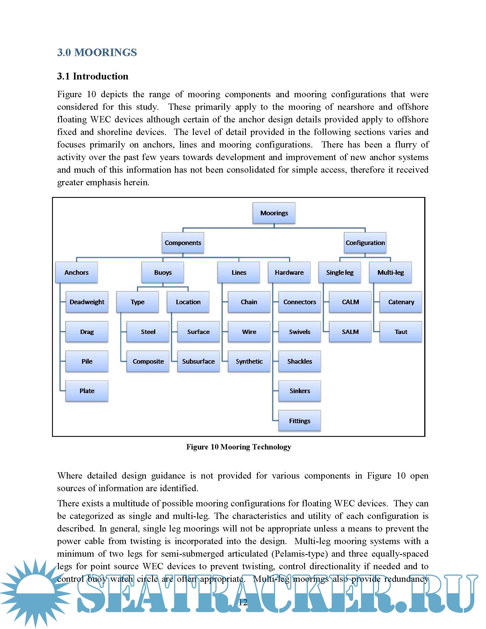Year: 2009 Language: english Author: Oregon Wave Energy Trust Format: PDF Quality: eBook Pages count: 192 Description: This report establishes an industry knowledge base for existing anchoring and mooring techniques as applied to wave energy conversion (WEC) devices in and around Oregon. The effort is supported by the Oregon Wave Energy Trust (OWET) whose mission is to facilitate the responsible development of the wave energy industry in Oregon. The coast of Oregon has the most energetic wave environment on the West coast of the U.S. except for Alaska. The responsible development of the Oregon wave energy industry requires exacting analysis, design and execution to ensure minimal effect on the environment while providing minimal cost mooring systems consistent with the lowest possible risk. There is a multitude of WEC devices in concept, in development or in demonstration, yet there are no universally applied standards or criteria specific to the design of wave energy devices. Designers typically select guides developed for floating structures from various sources (DnV, ABS, NK, API, and MMS), adapt them as best that they can, and trust that they achieve a safe and cost-effective design. This can lead to inconsistent designs while making it difficult for regulatory agencies to evaluate and certify the designs.