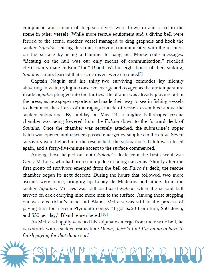 In 1939 off the New England coast, the submarine USS Squalus accidentally sinks to the bottom of the sea during a training exercise, killing half her crew. Coming to the rescue is the USS Sculpin, in many ways the Squalus’s twin. As their oxygen supply dwindles, the remaining crew aboard the Squalus are saved in a time-consuming, white-knuckle operation. Eventually the sunken submarine is raised, repaired, and returned to duty, with a new name: the Sailfish.