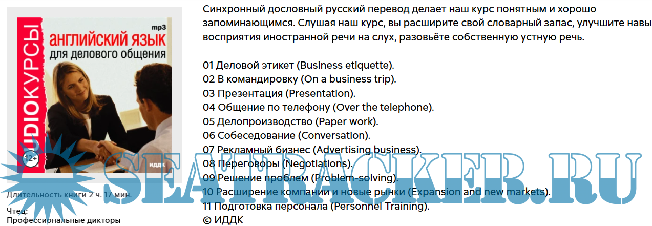 Описание: Аудиокурс «Английский язык для делового общения» предназначен для деловых людей, выезжающих за рубеж, желающих усовершенствовать свои знания английского языка, улучшить произношение и расширить словарный запас.