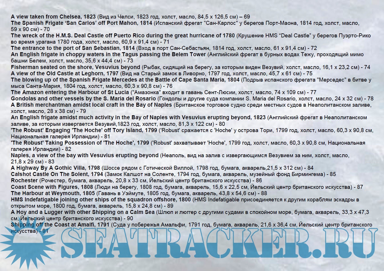 Описание: В пятом выпуске (Художники-маринисты) представлено более 100 репродукций английского живописца Джона Серреса (сына Доминика Серреса - см. четвёртый выпуск Художники-маринисты).