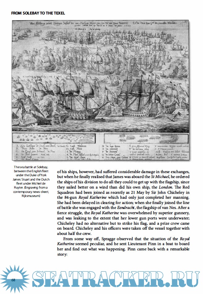 At Solebay on the Suffolk coast, de Ruyter surprised the English fleet on the morning of 28 May 1672; in the intense fighting Sandwich’s flagship, the Royal James was blown up and he was killed. Overall, the Dutch could claim it as a victory.