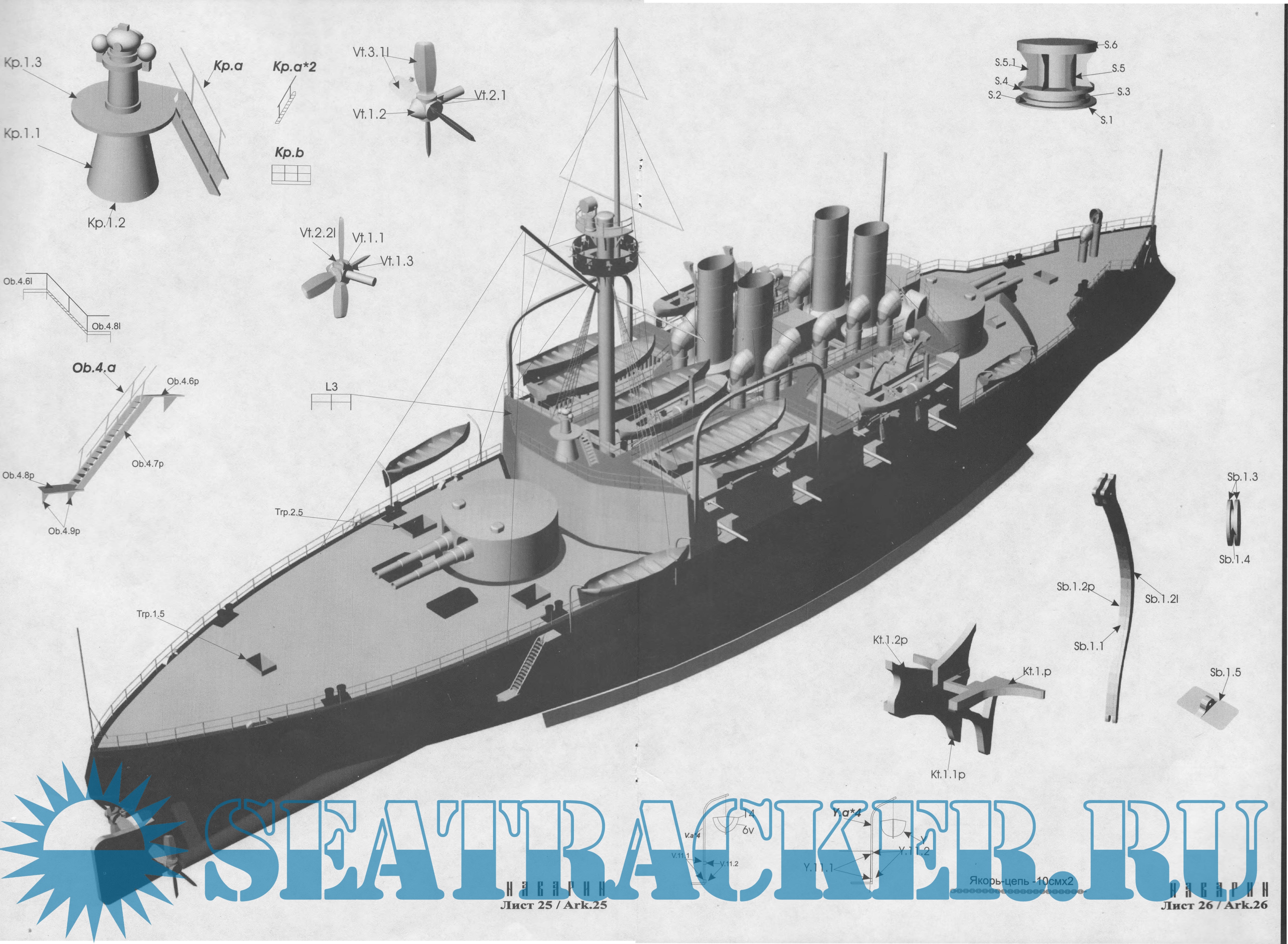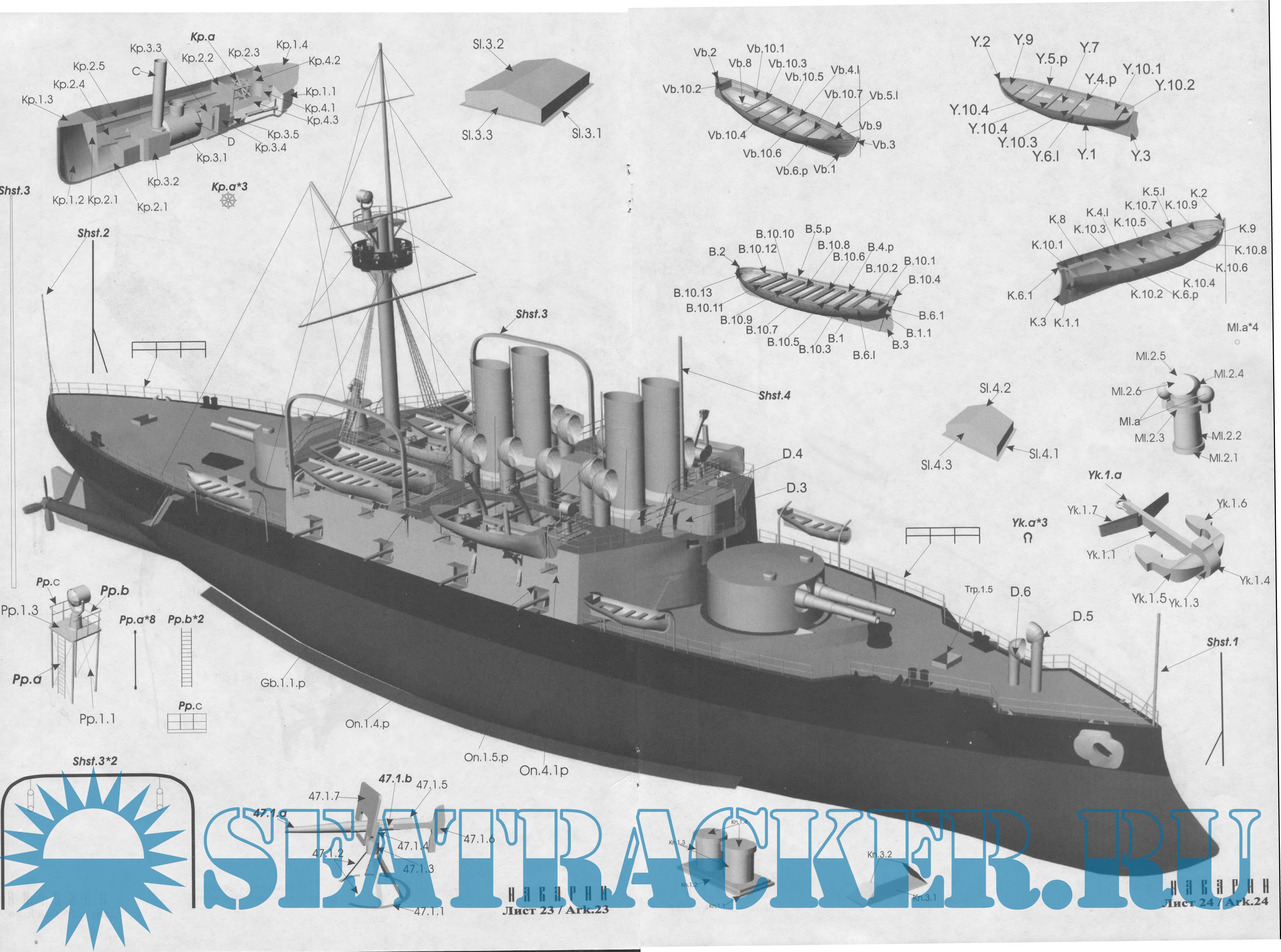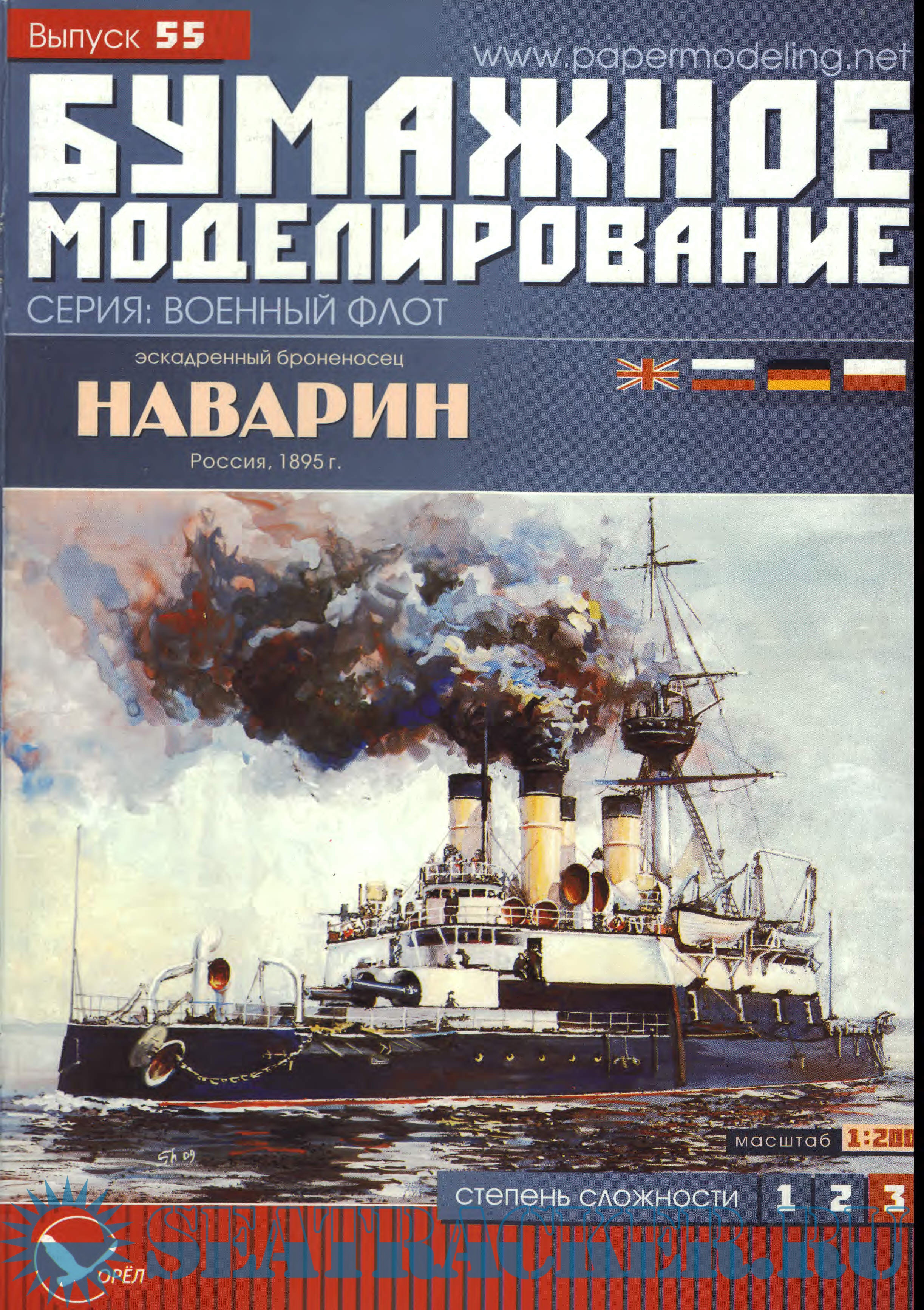 41 лист цветных выкроек и инструкций для изготовления бумажной модели эскадренного броненосца "Наварин" 1895 год в масштабе 1:200Скриншоты