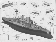 Описание: 41 лист цветных выкроек и инструкций для изготовления бумажной модели эскадренного броненосца "Наварин" 1895 год в масштабе 1:200