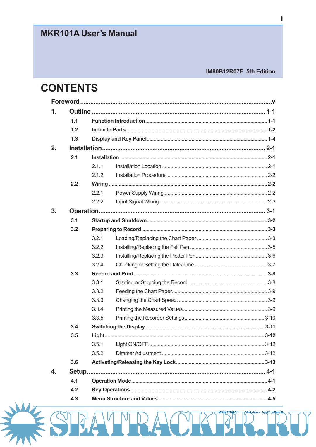 Description: This manual describes the functions , installation and wiring procedures, operating procedures, and lists the handling precautions of the MKR101A Course Recorder.