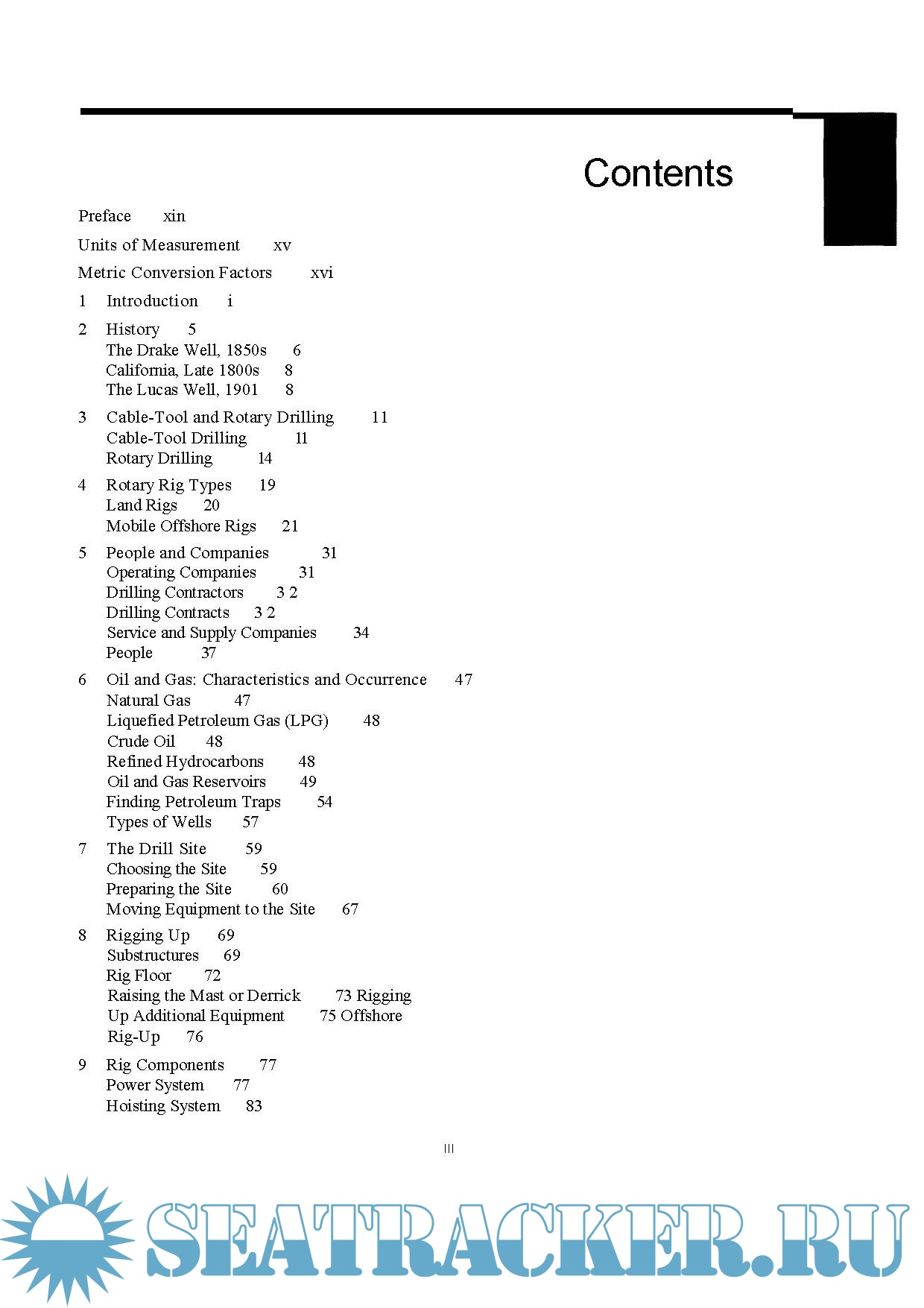 Year: 2001 Language: English Author: Ron Baker Genre: Handbook Format: PDF Quality: eBook Pages count: 207 Description: Petroleum Extension Service (PETEX) published the first edition of A Primer of Oil well Drilling in 1951. The book's section on cable-tool drilling was almost as large as the part devoted to rotary drilling, and it spent as much ink on steam power as it did on internal combustion engines. Later editions, of course, evolved with the industry; thus, the third edition (released in the early 1970s) did not so much as mention cable tools and steam power. PETEX generally releases new editions of the Primer when changes in drilling techniques and equipment are significant enough to warrant new versions. In two cases, however, changes to the manual were relatively minor. Therefore, PETEX released them as revisions rather than new editions. Consequently, this sixth edition of the Primer is, in reality, the eighth new version of the book since its initial release in the 1950s. To say that the drilling industry has changed since then is, of course, an understatement. This new edition reflects those changes; however, it also acknowledges old techniques and philosophy and their influence on the modern drilling industry. Regardless of how the industry has changed, the book's purpose has not: namely, to clearly explain drilling to nontechnical persons. The Primer is just that—a first reader of the oilwell drilling business. Although it is written primarily for adults, junior and senior high school students should also find it informative. It is important to acknowledge the contributions the drilling industry has made to this manual. Tom Thomas, Transocean Sedco Forex's Modular Training Project Manager, must be particularly recognized. Enduring numerous interruptions, he gave many hours of his time and expertise to answering questions and providing sources of information. He and his company also provided encouragement and access to offshore locations without which this book could not have been rewritten. Mike Stevens, Health, Safety, and Environmental Manager at Nabors Drilling USA, Inc. arranged for many visits to Nabors rigs to obtain photographs. Crews on every Nabors rig visited were courteous, helpful, and patient. Nabors' help in providing photos is inestimable. The same is true of Helmerich and Payne International Drilling Company and Rowan Companies, Inc., whose office and field personnel assisted every step of the way. Special thanks also go to Ken Fischer of IADC, who read the manuscript and gave many valuable suggestions for improving it. Making a good-looking book out of typed manuscript and a collection of photos and sketches is a hard job. Fortunately, the PETEX publications staff was more than up to the task. Their superlative work in editing, rewriting, drawing, photographing, laying out, and proofreading must be recognized, for without such efforts, this book could not exist in its present form.