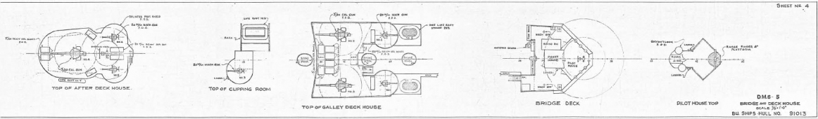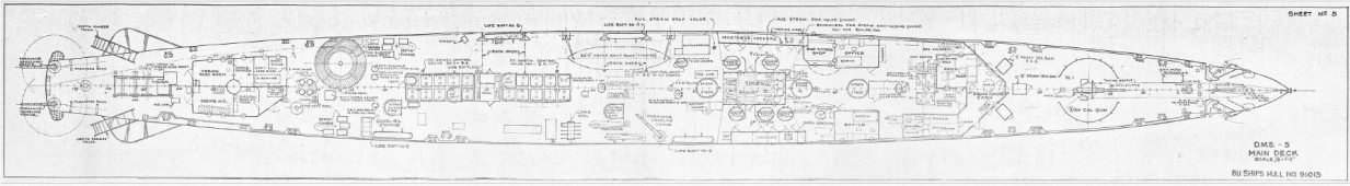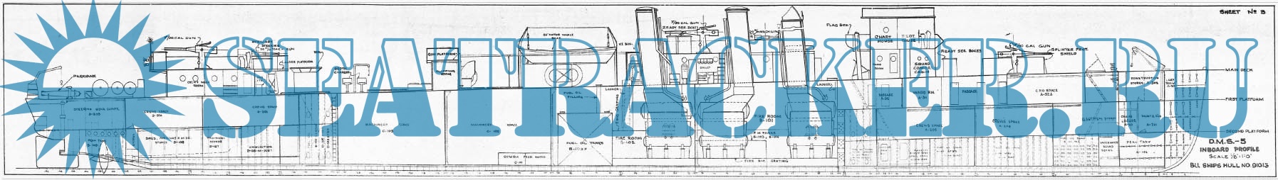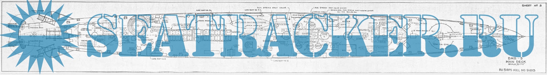 8 листов чертежей эсминца США DMS-5 (ex DD-161) - USS Palmer (тип «Wickes») на 1943 год.Скриншоты