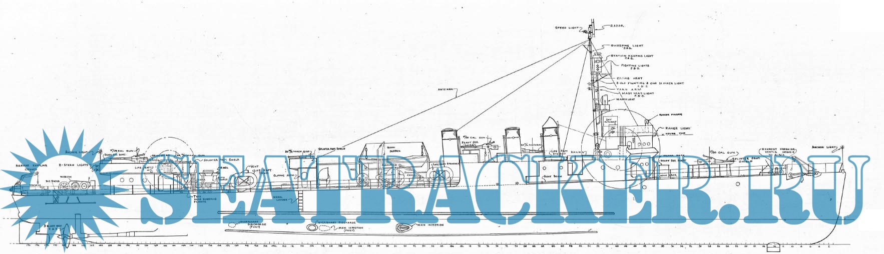 Архивные чертежи эсминца США DMS-5 (ex DD-161) - USS Palmer (тип «Wickes») на 1943 год.