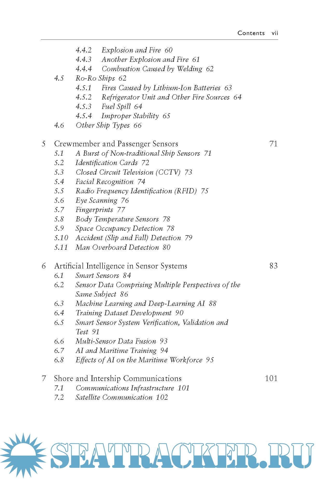 Chapters offer background information on typical legacy vessel sensor configurations and current International Maritime Organization (IMO) requirements for onboard sensors and future regulatory trends before discussing modern sensors and current- generation “smart” sensors that provide enhanced situational awareness to watchstanders. A vision of next- generation sensors currently being investigated for shipboard use is provided along with long- term trends in quantum sensing and computing that promise radical change across a wide variety of vessel functions. Insight is also given into cybersecurity factors so essential to all sensor systems.