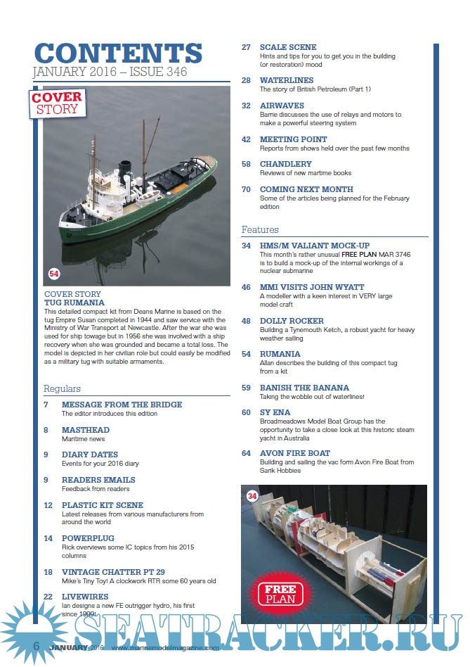 Year: 2016 Language: English Author: Traplet Publications Genre: Periodical (magazine) Edition: 2016-01 Format: PDF Quality: eBook Pages count: 72 Description: Marine Modeling International - this is a well estabilished UK title and chief rival to Model Boats.These magazines are full of feature articles covering kit reviews, scratch built specialist models and reports from major maritime-related shows from around the world.