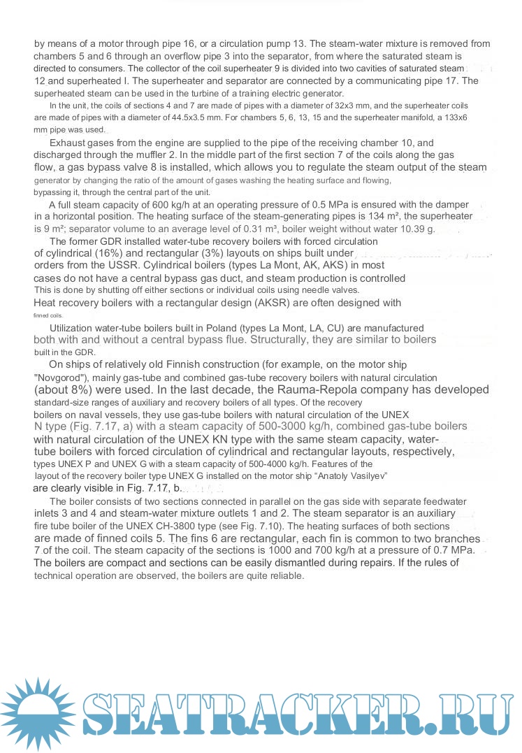 Description: The principle of operation, characteristics and design are considered. Features of the elements of ship boiler installations, the fundamentals of the theory of the working process of a steam boiler, recommendations are given for calculating the main indicators of the working process, and a classification of ship steam consumers is given.