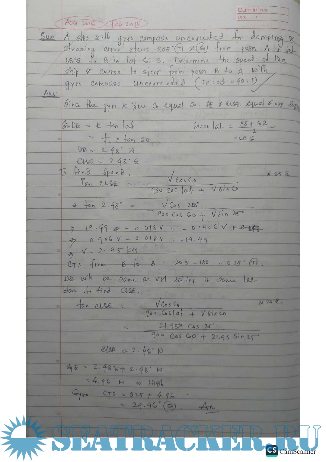 Navigational Aids - Gyro Numericals from Past Papers - Phase II (Chief Mate F.G.) Mercantile Marine…