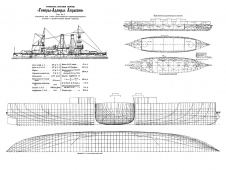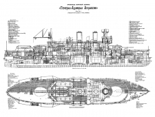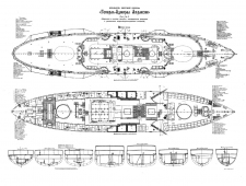 В конструкцию корабля, по сравнению с прототипом, были внесены значительные изменения. По инициативе С.О. Макарова был применен электропривод башен главного калибра. Здесь представлены отчетные чертежи этого корабля в разных проекциях.