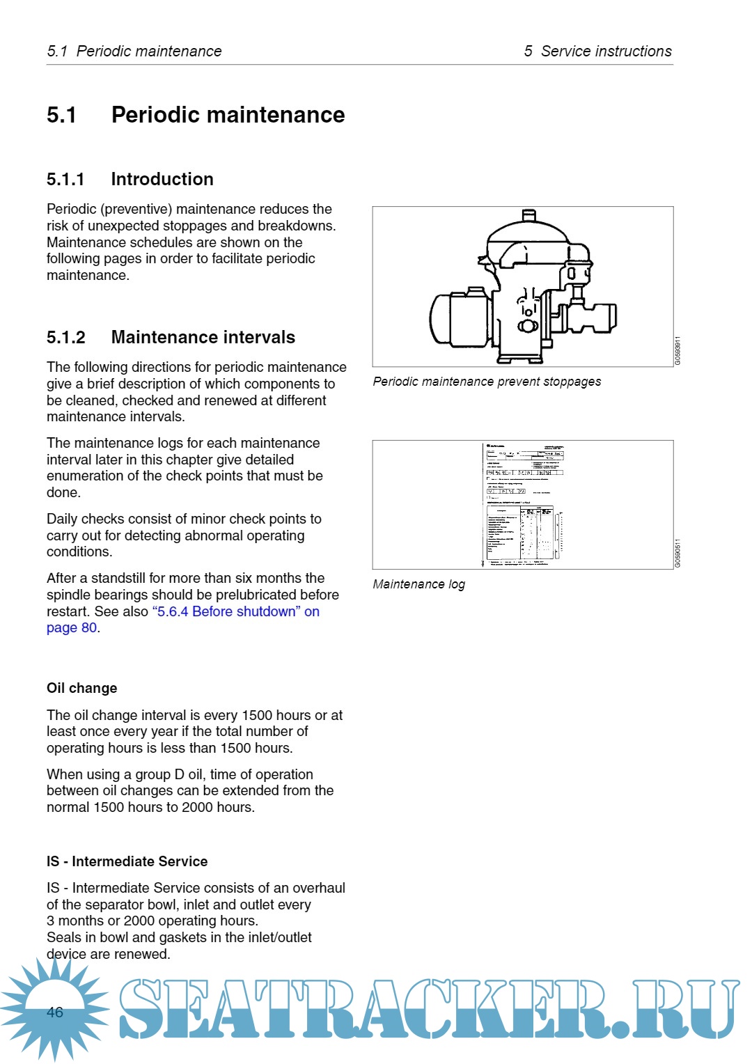 Year: 2019 Language: English Author: Alfa Laval Tumba AB Genre: Manual Publisher: Alfa Laval Tumba AB Format: PDF Quality: eBook Pages count: 164 Description: This manual is designed for operators and service engineers working with the Alfa Laval separator MAB 103B-24. For information concerning the function of the separator, see ‘‘3 Separator basics” on page 17, and ‘‘4 Operating instructions” on page 31. If the separator has been delivered and installed by Alfa Laval as part of a processing system, this manual is a part of the System Manual. In this case, study carefully all the instructions in the System Manual. In addition to this Separator manual a Spare Parts Catalogue, SPC is supplied. This Separator manual consists of: Safety instructions Pay special attention to the safety instructions for the separator. Not following the safety instructions can cause accidents resulting in damage to equipment and serious injury to personnel. Separator basics Read this chapter if you are not familiar with this type of separator. Operating instructions This chapter contains operating instructions for the separator only.