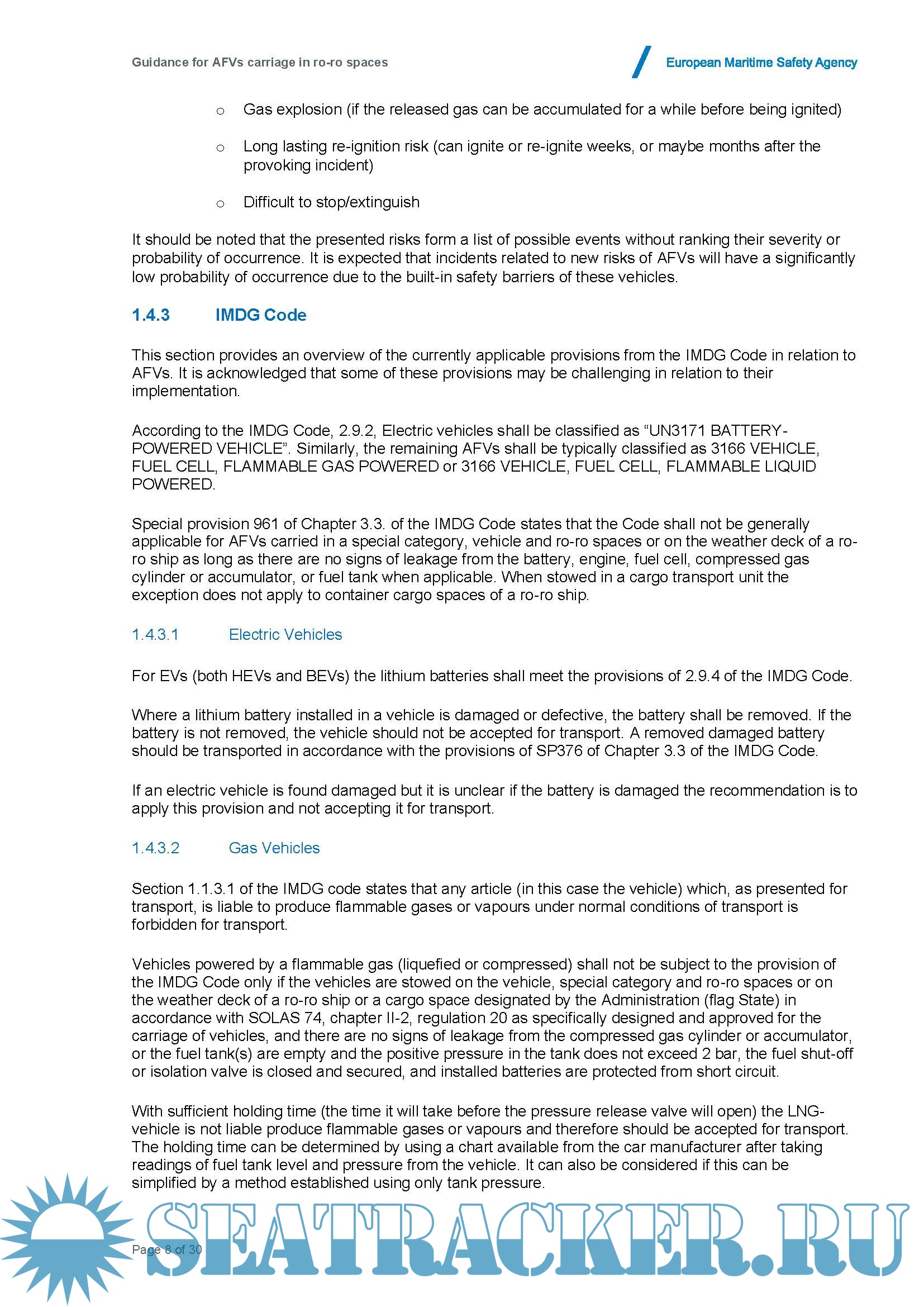 Year: 2022 Language: English Author: European Maritime Safety Agency (EMSA) Genre: Guide Edition: 1.1 Format: PDF Quality: eBook Pages count: 30 Description: The main reasons behind the topic of alternative fuel vehicles (AFVs) becoming a serious safety concern are the enormous growth of the AFVs fleet, the potential fire risks of these vehicles and a high uncertainty on the associated fire characteristics. EMSA has collected passenger car registration data in the EU per fuel type. This document draws knowledge and experience from up-to-date research projects and scientific papers (ALBERO, RISE). However, it is acknowledged that there is significant ongoing research on relevant topics, e.g. in the LASH FIRE project. It is foreseen that this Guidance will be updated accordingly once these studies have been finalised (2023) and relevant experience from the implementation of the document is gathered. This Guidance has been developed to assist relevant authorities and stakeholders with ensuring that the carriage of AFVs onboard ships is conducted safely and with due regard for protection of the environment.