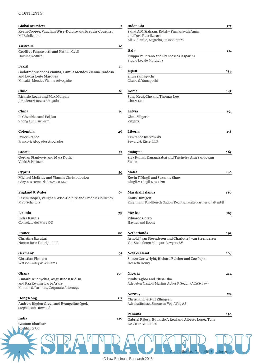 Throughout this edition, and following the unique Getting the Deal Through format, the same key questions are answered by leading practitioners in each of the jurisdictions featured. Our coverage this year includes new chapters on Marshall Islands and Mexico.