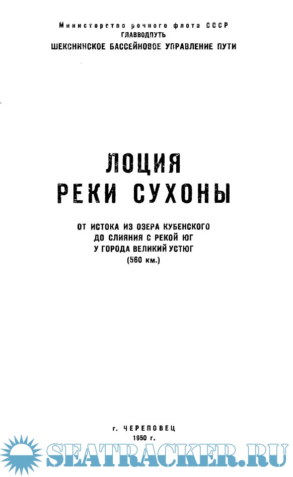 Лоция реки Сухоны от истока из озера Кубенского до слияния с рекой Юг у города Великий Устюг